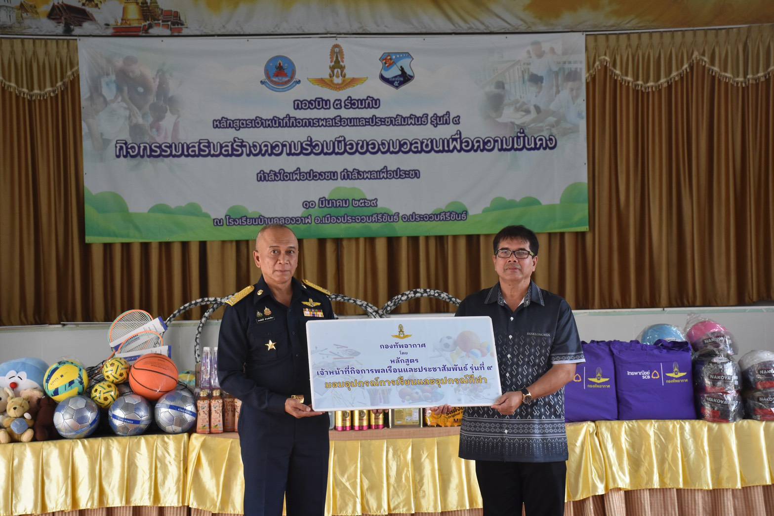 โอกาสนี้ พลอากาศโท ประสิทธิ์ ดำรงค์ปรีชา เจ้ากรมกิจการพลเรือนทหารอากาศ ร่วมกับนาวาอากาศเอก รัตนศักดิ์ โพธิ์แก้ว ผู้บังคับการกองบิน ๕ และคณะ นำนายทหารนักเรียนหลักสูตรเจ้าหน้าที่กิจการพลเรือนและประชาสัมพันธ์ รุ่นที่ ๙ จัดกิจกรรมเพื่อช่วยเหลือโรงเรียนและประชาชน โดยมี นายพีระชาติ ศรีมหันต์ ผู้อำนวยการโรงเรียนบ้านคลองวาฬ และคณะครูฯ ให้การต้อนรับ