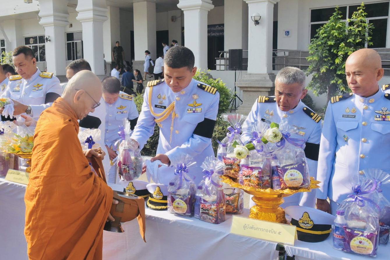 นาวาอากาศเอก รัตนศักดิ์ โพธิ์แก้ว ผู้บังคับการกองบิน ๕ มอบหมายให้ นาวาอากาศเอก สุทธิวัฒน์ บุญชู เสนาธิการกองบิน ๕ นำข้าราชการกองบิน ๕ เข้าร่วมพิธีทำบุญตักบาตรถวายพระราชกุศลถวายพระพรชัยมงคล เนื่องในวันคล้ายวันพระราชสมภพสมเด็จพระกนิษฐาธิราชเจ้า กรมสมเด็จพระเทพรัตนราชสุดาฯสยามบรมราชกุมารี และวันอนุรักษ์มรดกไทย ประจำปี ๒๕๖๙