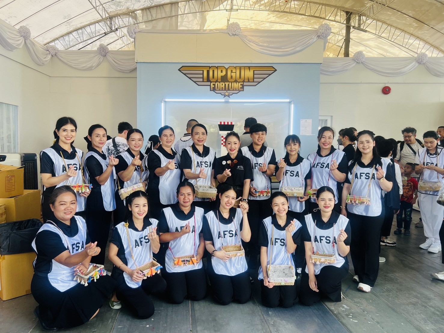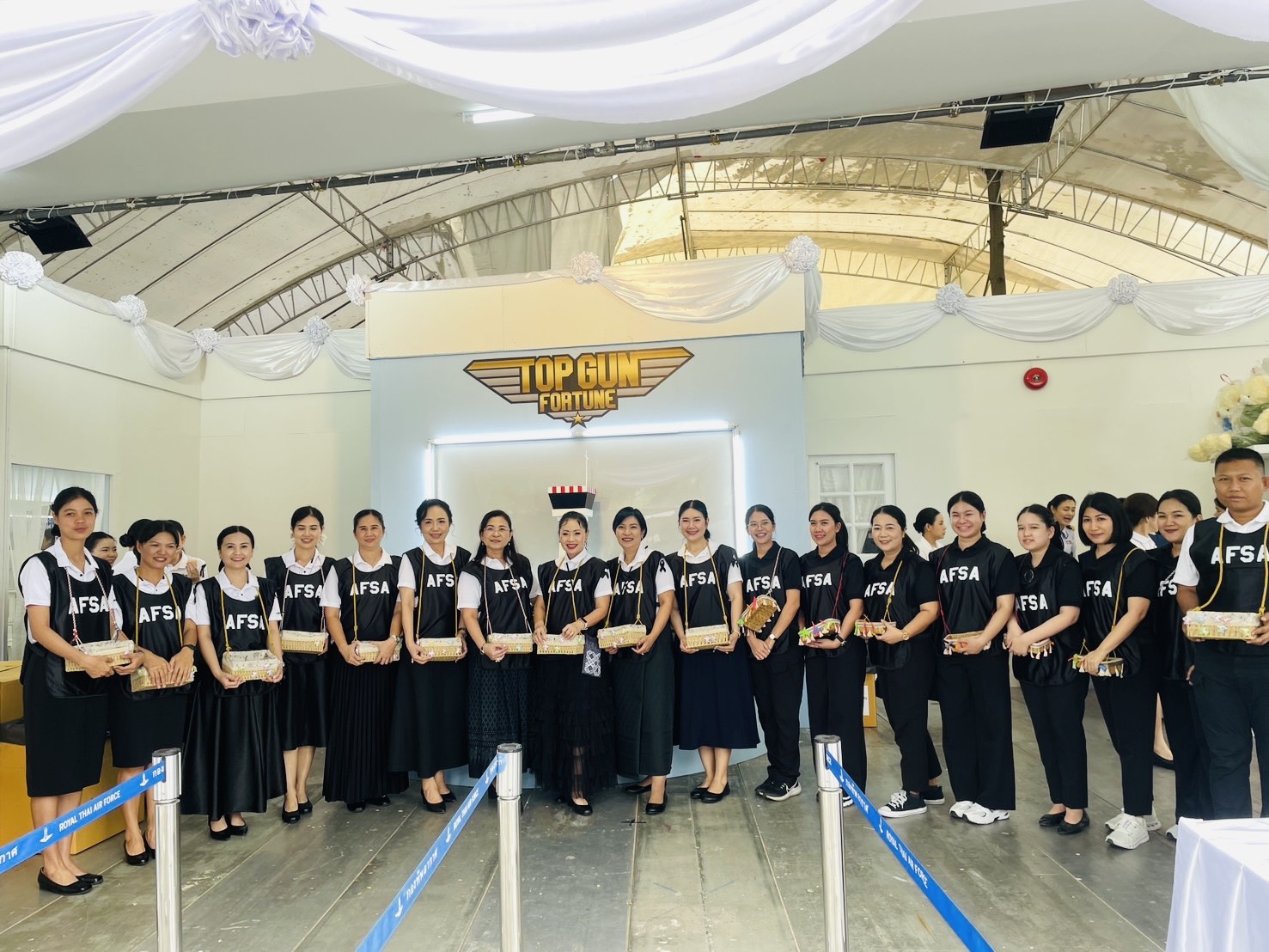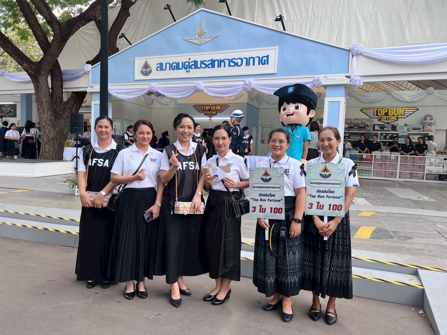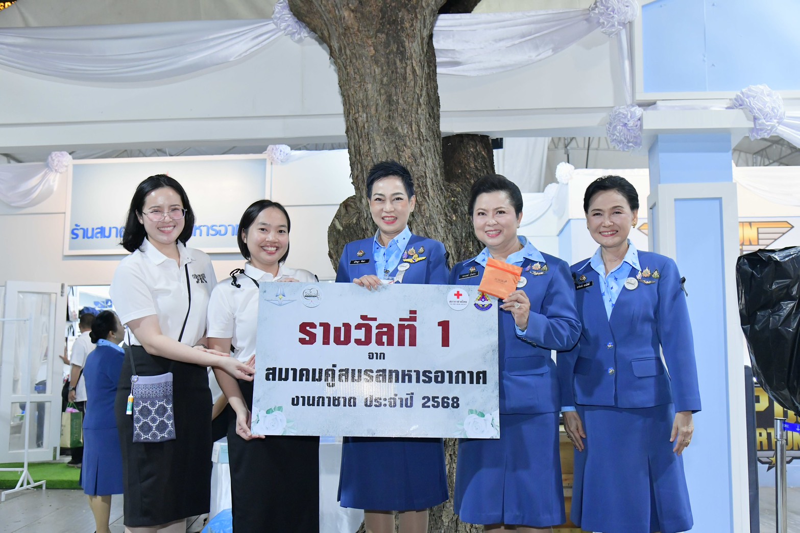 งานกาชาด 11-21 ธันวาคม 2568 กองบิน 5 โดย น.อ.รัตนศักดิ์ โพธิ์แก้ว ได้มอบหมายให้ ดร.กรรณิกา โพธิ์แก้ว ประธานชมรมคู่สมรสทหารอากาศ กองบิน 5 และสมาชิกชมรมคู่สมรสทหารอากาศ กองบิน 5 ได้ร่วมกิจกรรมจำหน่ายสลากเครื่องบิน “Top Gun Fortune” ออกร้านงานกาชาด ประจำปี 2568 ณ ร้านกาชาดกองทัพอากาศ สวนลุมพินี กรุงเทพมหานคร