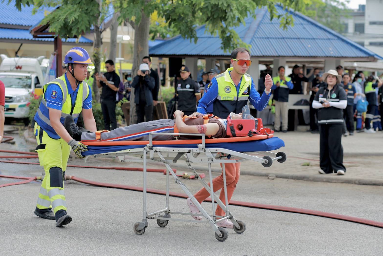 นาวาอากาศเอก รัตนศักดิ์ โพธิ์แก้ว ผู้บังคับการกองบิน ๕ มอบหมายให้ นาวาอากาศเอก ชิดพล อุไรพงษ์ รองผู้บังคับการกองบิน ๕ นำกำลังพลศูนย์บรรเทาสาธารณภัยกองบิน ๕ เข้าร่วมฝึกซ้อมแผนบูรณาการความร่วมมือ และทบทวนการช่วยเหลืออุบัติเหตุหมู่ในสถานการณ์เสมือนจริง
