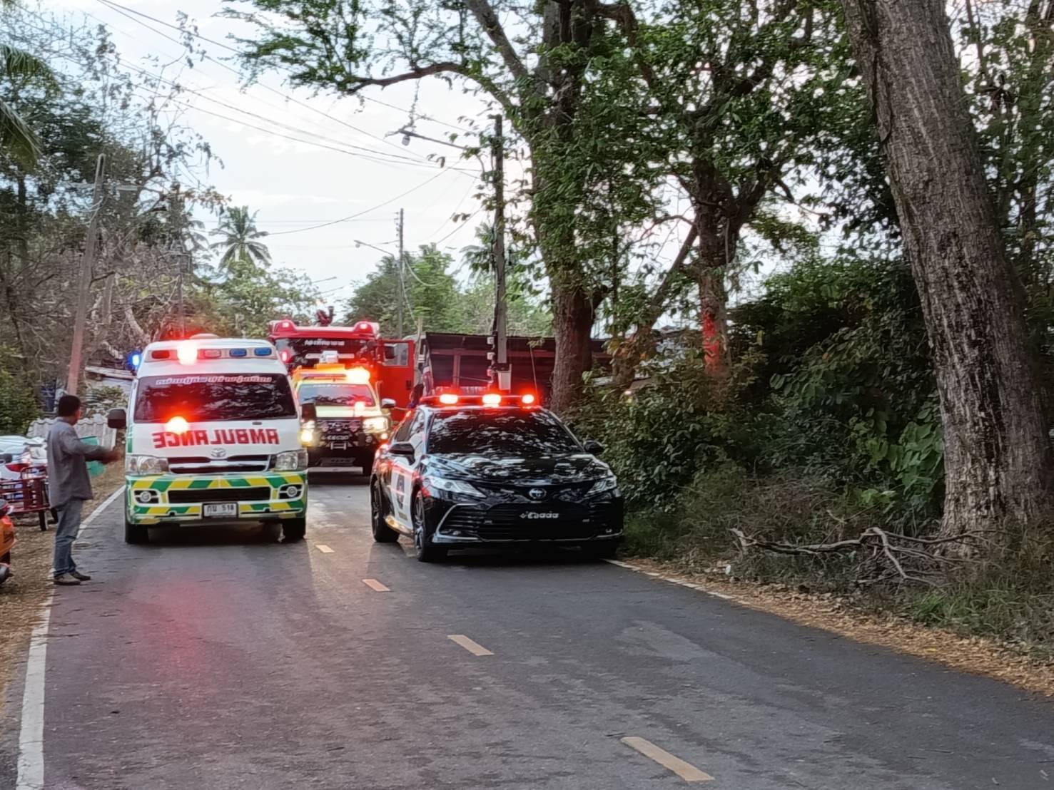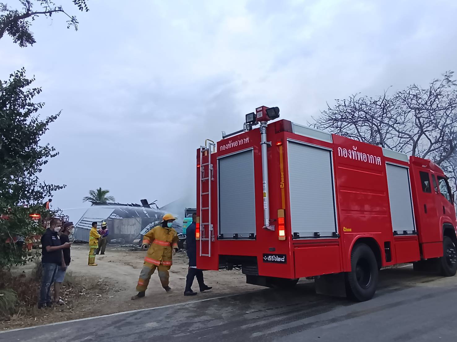 ๑) เจ้าหน้าที่หมวดดับเพลิงและกู้ภัย แผนกช่างโยธา กองบิน ๕ พร้อมรถดับเพลิง และรถกู้ภัย