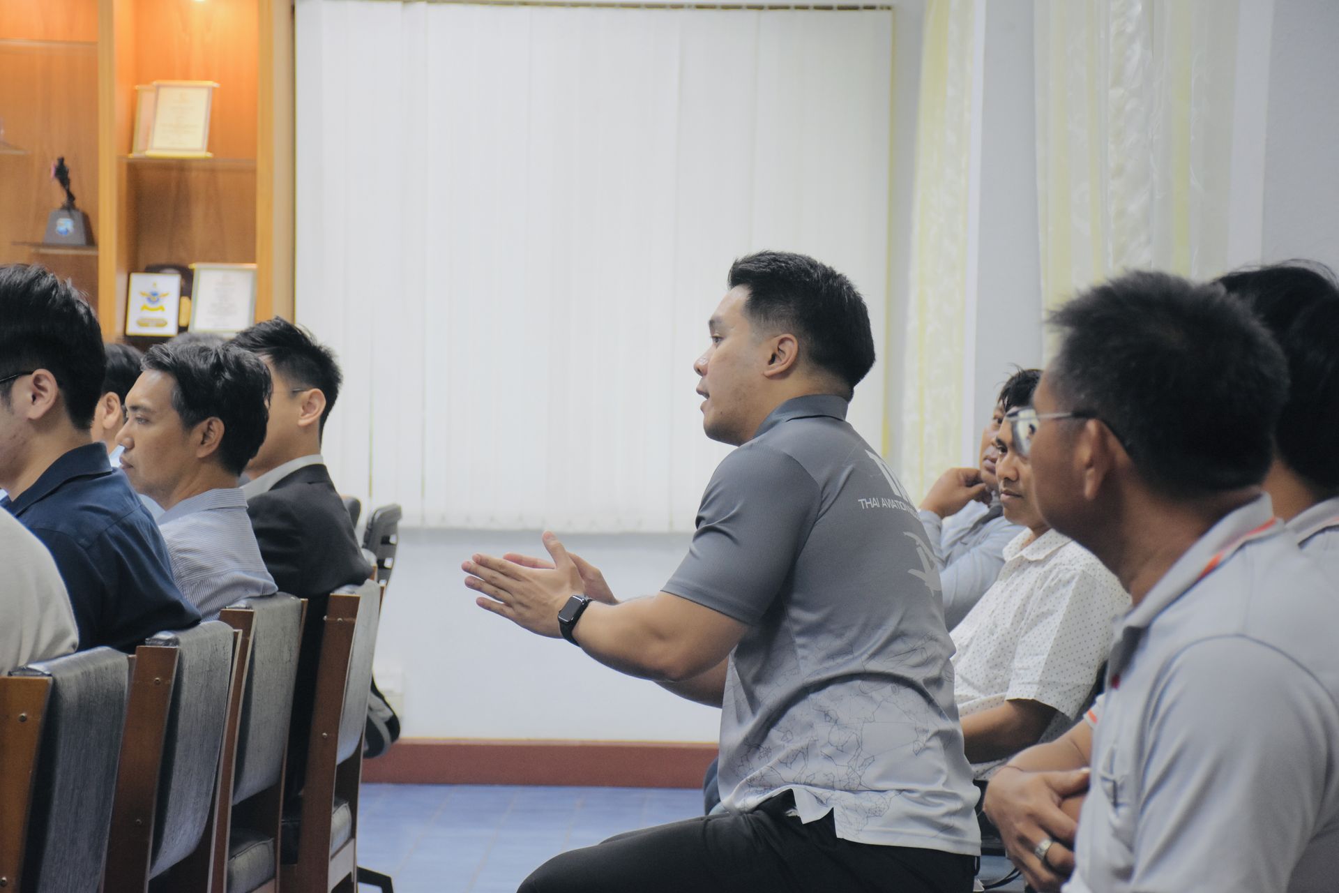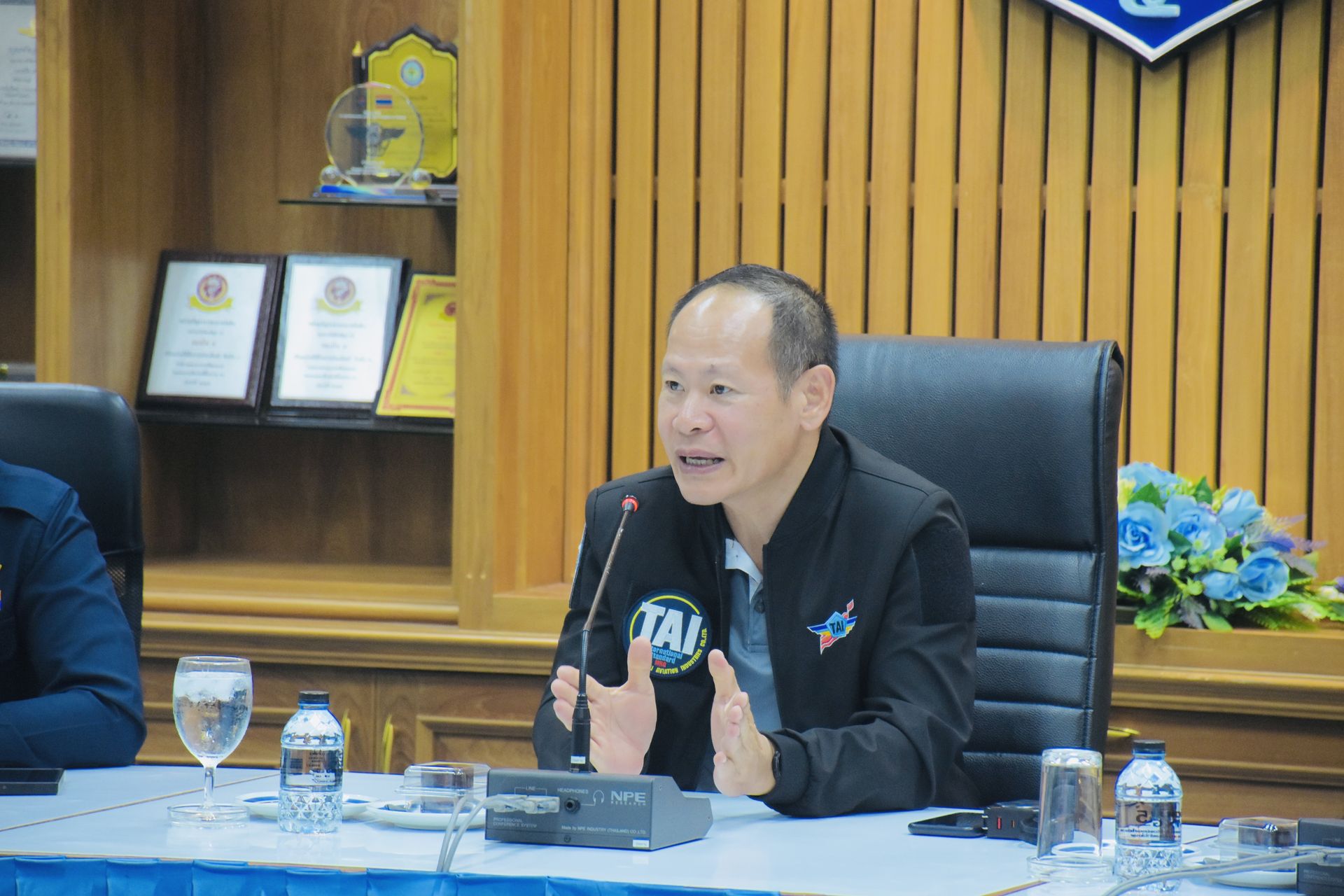 นาวาอากาศเอก พงศ์ชนินทร์ นุชประเสริฐ ผู้บังคับการกองบิน ๕ มอบหมายให้ นาวาอากาศเอก พยุงศักดิ์ สยมพร รองผู้บังคับการกองบิน ๕ พร้อมด้วย รองผู้บังคับการกองบิน ๕ เสนาธิการกองบิน ๕ และผู้บังคับฝูงบิน ๕๐๑ กองบิน ๕ นำข้าราชการกองบิน ๕ ให้การต้อนรับ คณะดำเนินงาน บริษัท อุตสาหกรรมการบิน จำกัด (TAI) ในโอกาสเดินทางรับฟังบรรยายสรุปและสำรวจอากาศยานเพื่อการซ่อมบำรุง ณ ห้องบรรยายสรุปฝูงบิน ๕๐๑ กองบิน ๕ ตำบลเกาะหลัก อำเภอเมืองประจวบคีรีขันธ์ จังหวัดประจวบคีรีขันธ์ เมื่อวันที่ ๒๕ สิงหาคม ๒๕๖๘