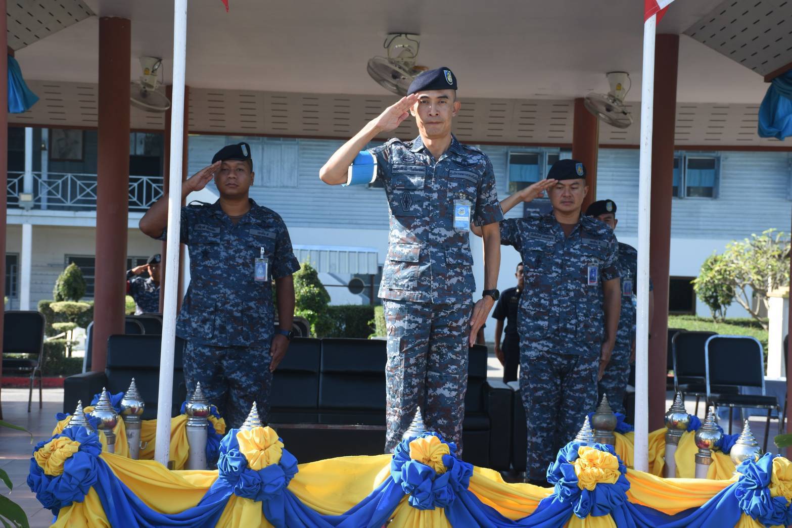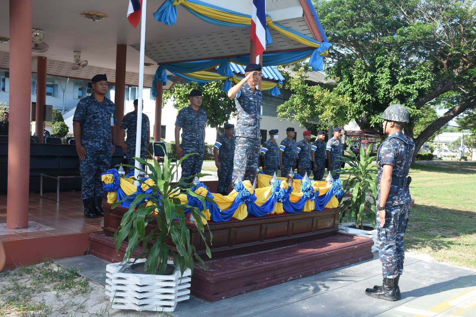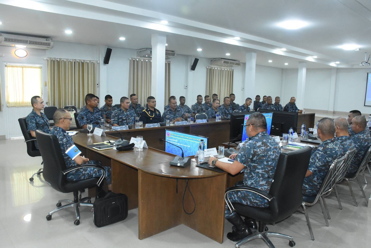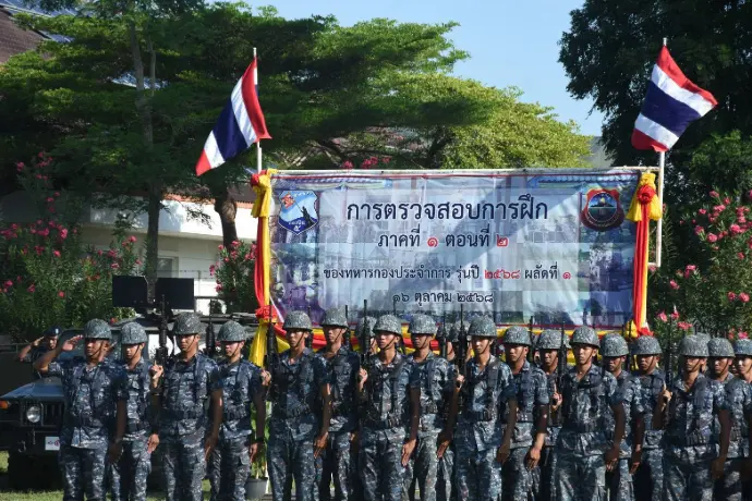 นาวาอากาศเอก รัตนศักดิ์ โพธิ์แก้ว ผู้บังคับการกองบิน ๕ พร้อมด้วย รองผู้บังคับการกองบิน ๕ เสนาธิการกองบิน ๕ ผู้บังคับกองพันทหารอากาศโยธินกองบิน ๕ หัวหน้าหน่วยขึ้นตรงกองบิน ๕ และข้าราชการกองบิน ๕ ให้การต้อนรับ นาวาอากาศเอก พัฒนสันต์ โพธิแพทย์ ประธานกรรมการตรวจสอบการฝึกภาคที่ ๑ ตอนที่ ๒ ของทหารกองประจำการ รุ่นปี ๒๕๖๘ ผลัดที่ ๑ และคณะ ณ กองพันทหารอากาศโยธิน กองบิน ๕ เมื่อวันที่ ๑๖ ตุลาคม ๒๕๖๘ ณ กองพันทหารอากาศโยธิน กองบิน ๕ ตำบลเกาะหลัก อำเภอเมืองประจวบคีรีขันธ์ จังหวัดประจวบคีรีขันธ์