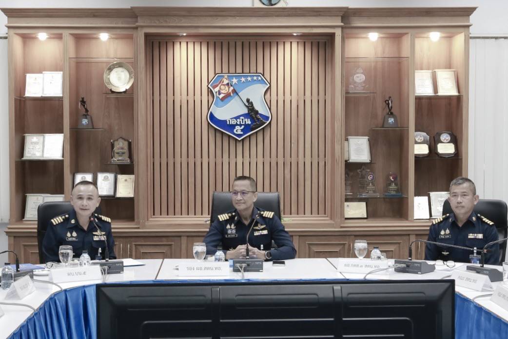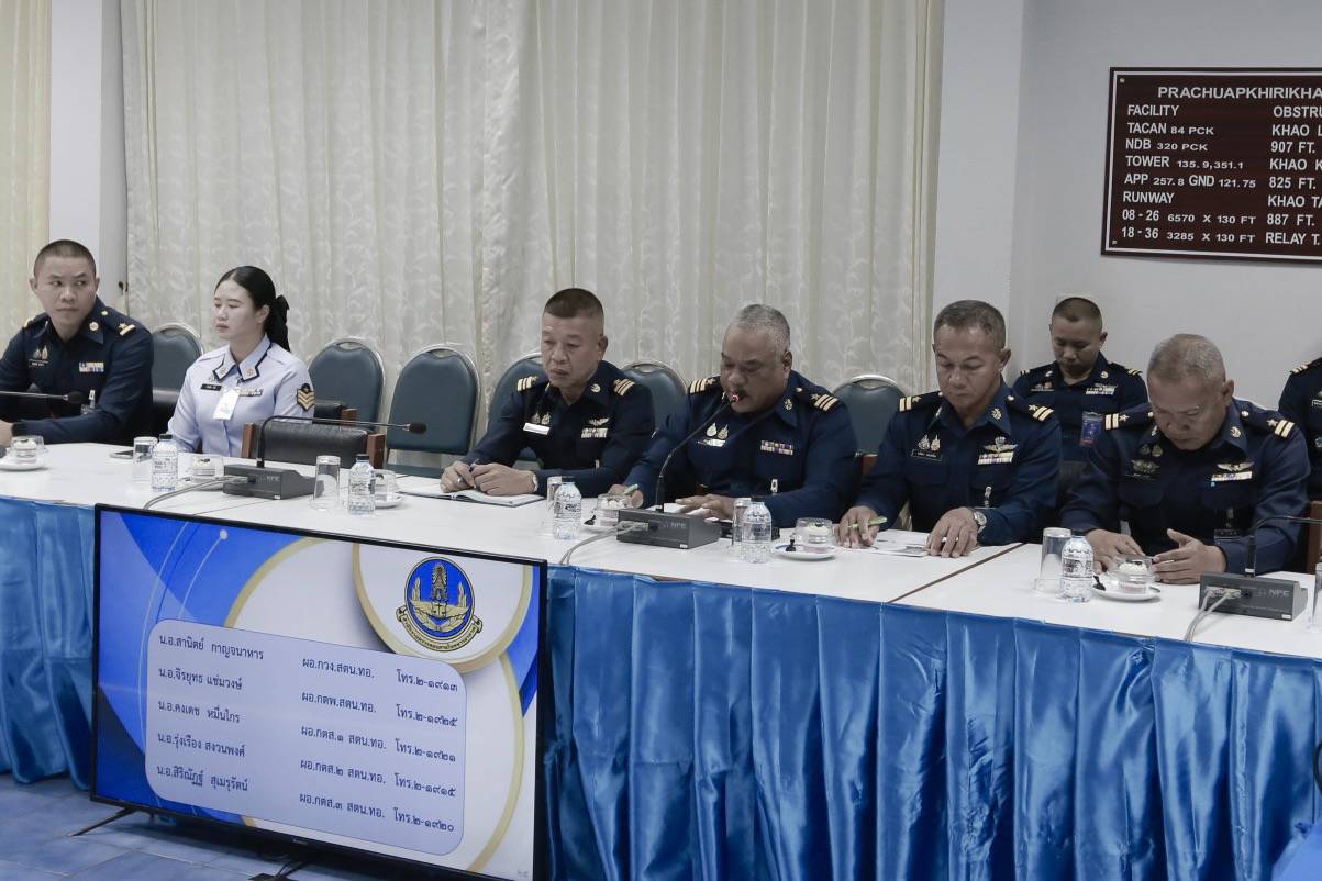 นาวาอากาศเอก รัตนศักดิ์ โพธิ์แก้ว ผู้บังคับการกองบิน ๕ พร้อมด้วยเสนาธิการกองบิน ๕ หัวหน้าหน่วยขึ้นตรง และข้าราชการกองบิน ๕ ให้การต้อนรับ นาวาอากาศเอก วรุตม์ วรรณวิไล รองผู้อำนวยการสำนักงานตรวจสอบภายในทหารอากาศ และคณะ ในโอกาสเดินทางมาให้คำปรึกษาเกี่ยวกับกระบวนการจัดทำ แผนบริหารความเสี่ยง ประจำปีงบประมาณ ๒๕๖๘ ณ ห้องบรรยายสรุป ฝูงบิน ๕๐๑ กองบิน ๕ ตำบลเกาะหลัก อำเภอเมืองประจวบคีรีขันธ์ จังหวัดประจวบคีรีขันธ์ เมื่อวันที่ ๒๕ พฤศจิกายน ๒๕๖๘