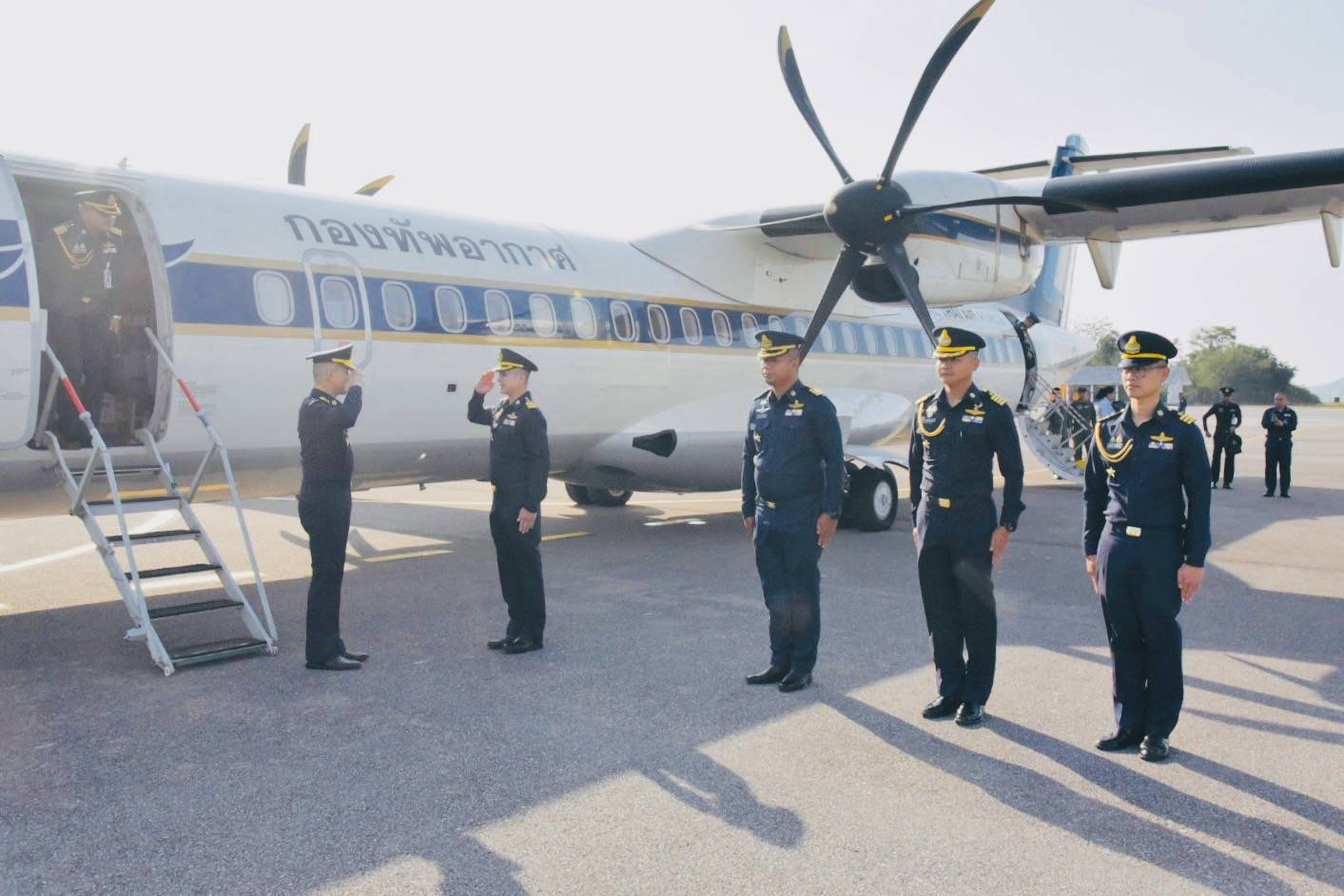 นาวาอากาศเอก รัตนศักดิ์ โพธิ์แก้ว ผู้บังคับการกองบิน ๕ พร้อมด้วย รองผู้บังคับการกองบิน ๕ เสนาธิการกองบิน ๕ หัวหน้าหน่วยขึ้นตรง และข้าราชการกองบิน ๕ ให้การต้อนรับ พลอากาศโท วิโรช พยาน้อย เจ้ากรมกำลังพลทหารอากาศ และคณะฯ ในโอกาสเดินทางมาตรวจเยี่ยมสายวิทยาการกำลังพลทหารอากาศ