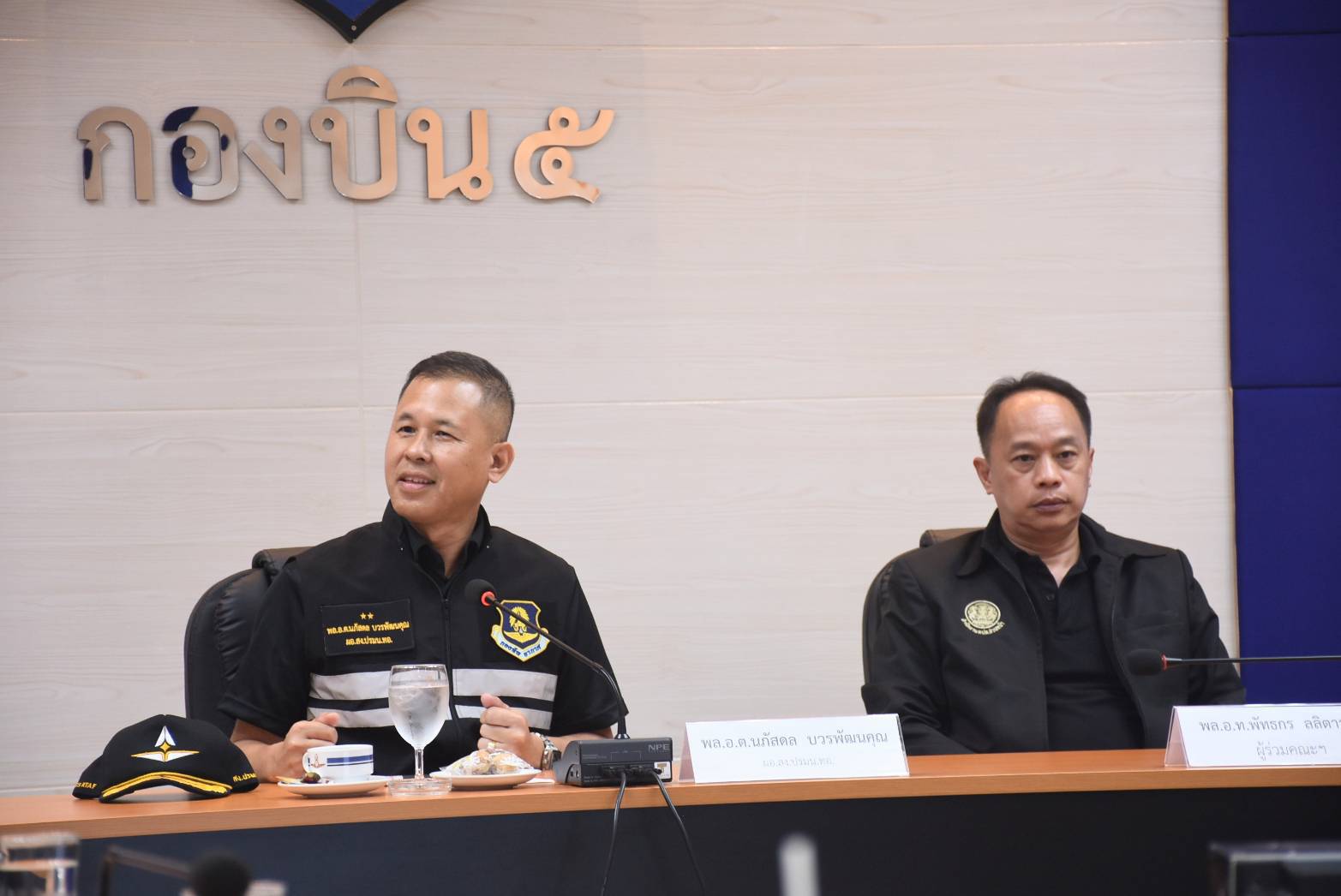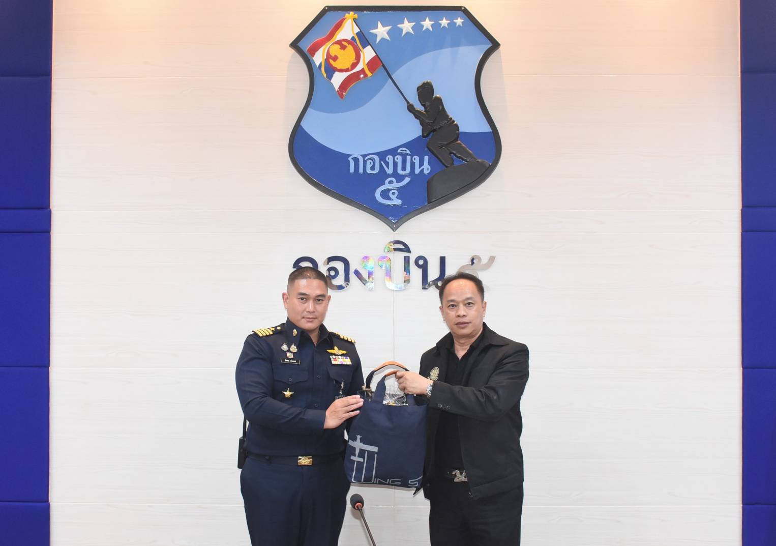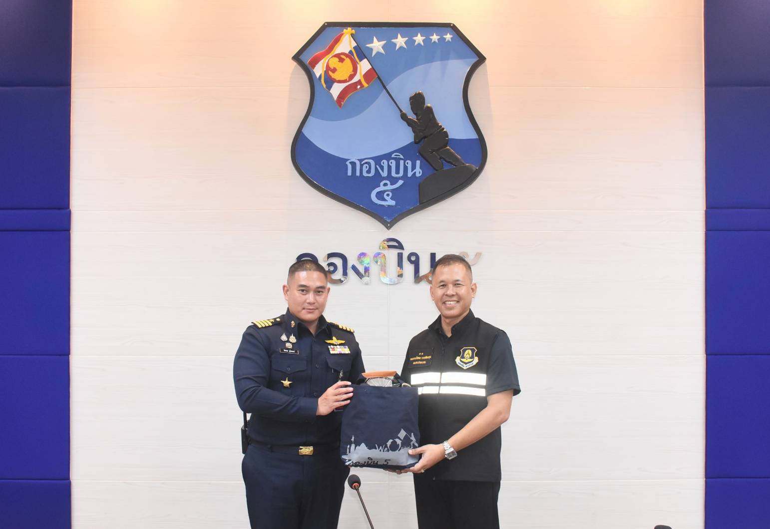 นาวาอากาศเอก รัตนศักดิ์ โพธิ์แก้ว ผู้บังคับการกองบิน ๕ มอบหมายให้ นาวาอากาศเอก ชิดพล อุไรพงษ์ รองผู้บังคับการกองบิน ๕ ให้การต้อนรับพลอากาศตรี นภัสดล บวรพัฒนคุณ ผู้อำนวยการสำนักงานประสานภารกิจด้านความมั่นคง กับกองอำนวยการรักษาความมั่นคงภายในราชอาณาจักรกองทัพอากาศ และคณะ