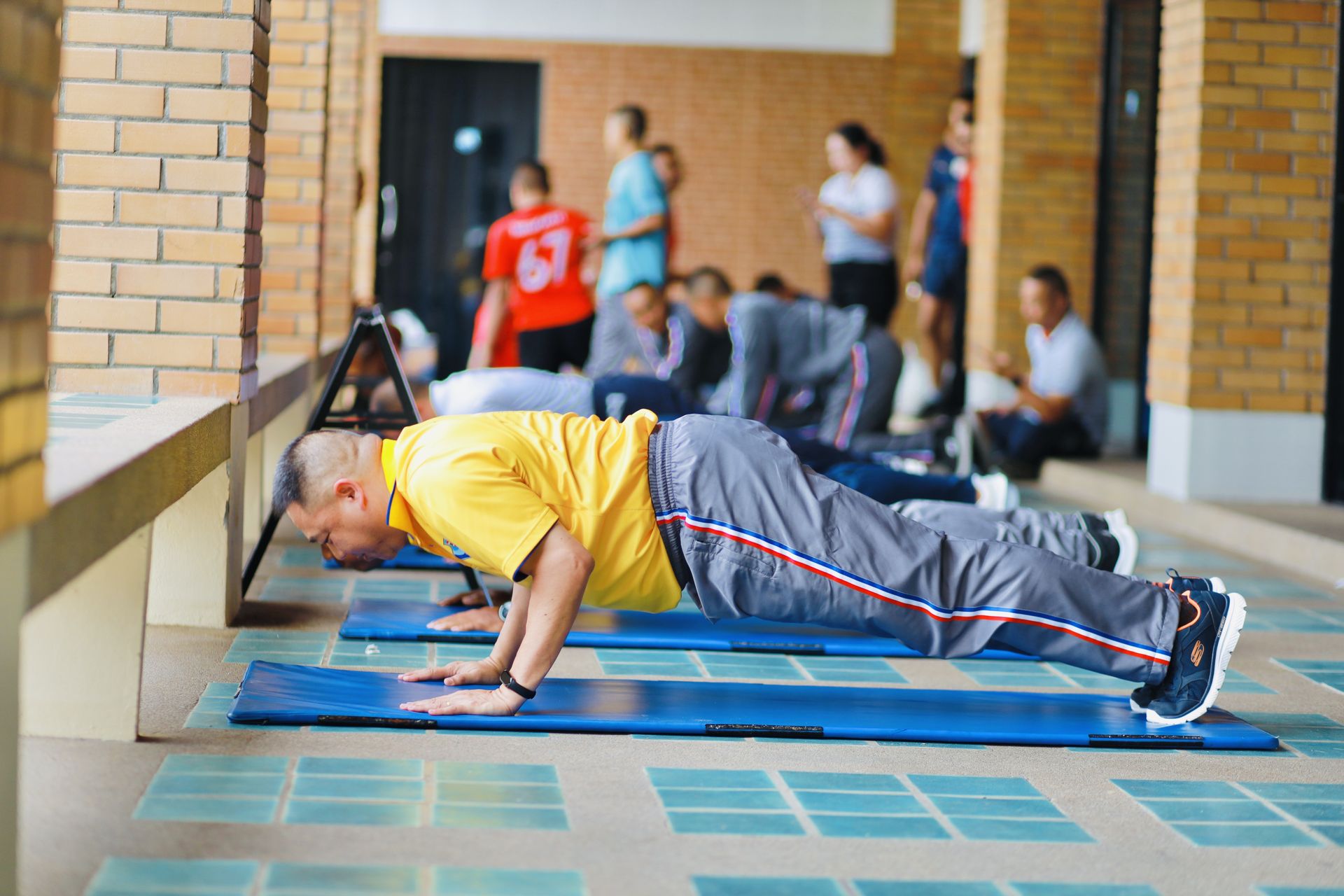 นาวาอากาศเอก พงศ์ชนินทร์ นุชประเสริฐ ผู้บังคับการกองบิน ๕ พร้อมด้วย รองผู้บังคับการกองบิน ๕ หัวหน้าหน่วยขึ้นตรงกองบิน ๕ นำกำลังพลกองบิน ๕ ร่วมการทดสอบสมรรถภาพร่างกายกำลังพล ครั้งที่ ๒ ประจำปี ๒๕๖๘ ระหว่างวันที่ ๒๒ - ๒๕ กรกฎาคม ๒๕๖๘ ณ บริเวณสวนสาธารณะกองบิน ๕ ตำบลเกาะหลัก อำเภอเมืองประจวบคีรีขันธ์ จังหวัดประจวบคีรีขันธ์