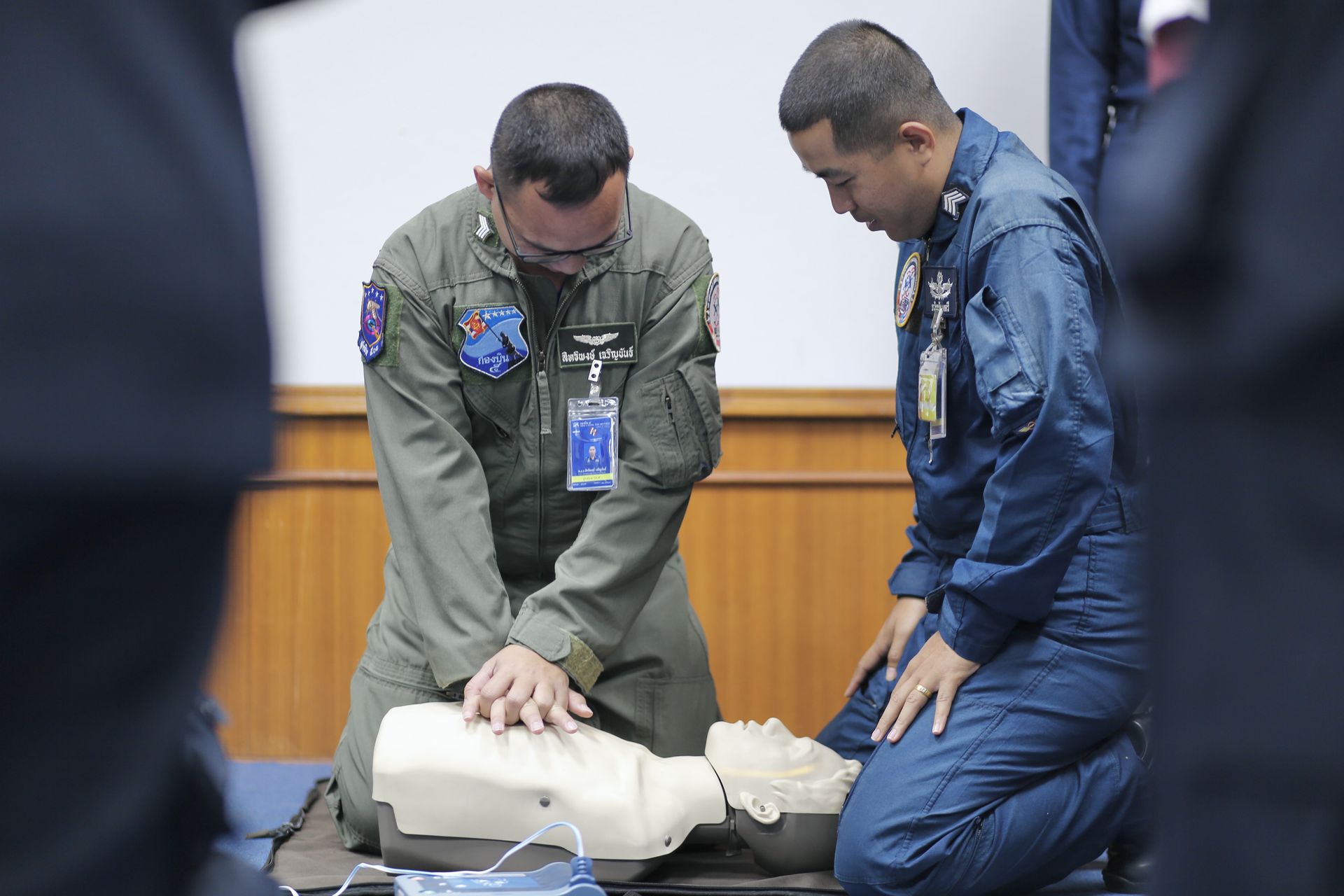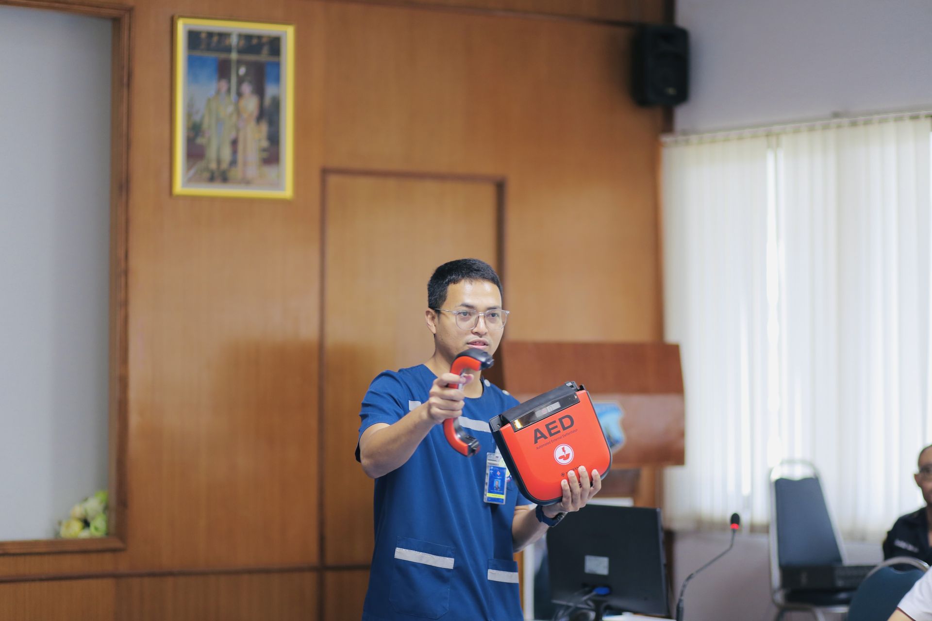 นาวาอากาศเอก พงศ์ชนินทร์ นุชประเสริฐ ผู้บังคับการกองบิน ๕ มอบหมายให้ นิรภัยกองบิน ๕ จัดกิจกรรม RTAF Safety Day เพื่อทบทวนความรู้และแนวทางการปฏิบัติเมื่อเกิดเหตุฉุกเฉิน พร้อมทั้งฝึกการใช้เครื่องช่วยชีวิต(AED) จากโรงพยาบาลกองบิน ๕ ณ ห้องบรรยายสรุป ฝูงบิน ๕๐๑ กองบิน ๕ ตำบลเกาะหลัก อำเภอเมือง จังหวัดประจวบคีรีขันธ์ วันที่ ๒๕ กรกฎาคม ๒๕๖๘