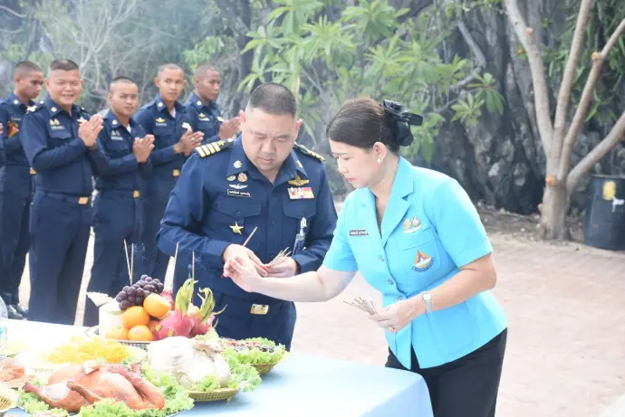 นาวาอากาศเอก พงศ์ชนินทร์ นุชประเสริฐ ผู้บังคับการกองบิน ๕ พร้อมด้วย คุณพลอยนภัส นุชประเสริฐ ประธานชมรมคู่สมรสทหารอากาศกองบิน ๕ รองผู้บังคับการกองบิน ๕ และหัวหน้าหน่วยขึ้นตรง ร่วมกระทำพิธีบรวงสรวงสักการะ ศาลกรมหลวงชุมพรเขตอุดมศักดิ์ (เสด็จเตี่ย) ซึ่งถือเป็นสถานที่ศักดิ์สิทธิ์ที่ประชาชนและชาวเรือให้ความเคารพศรัทธาอย่างยิ่ง