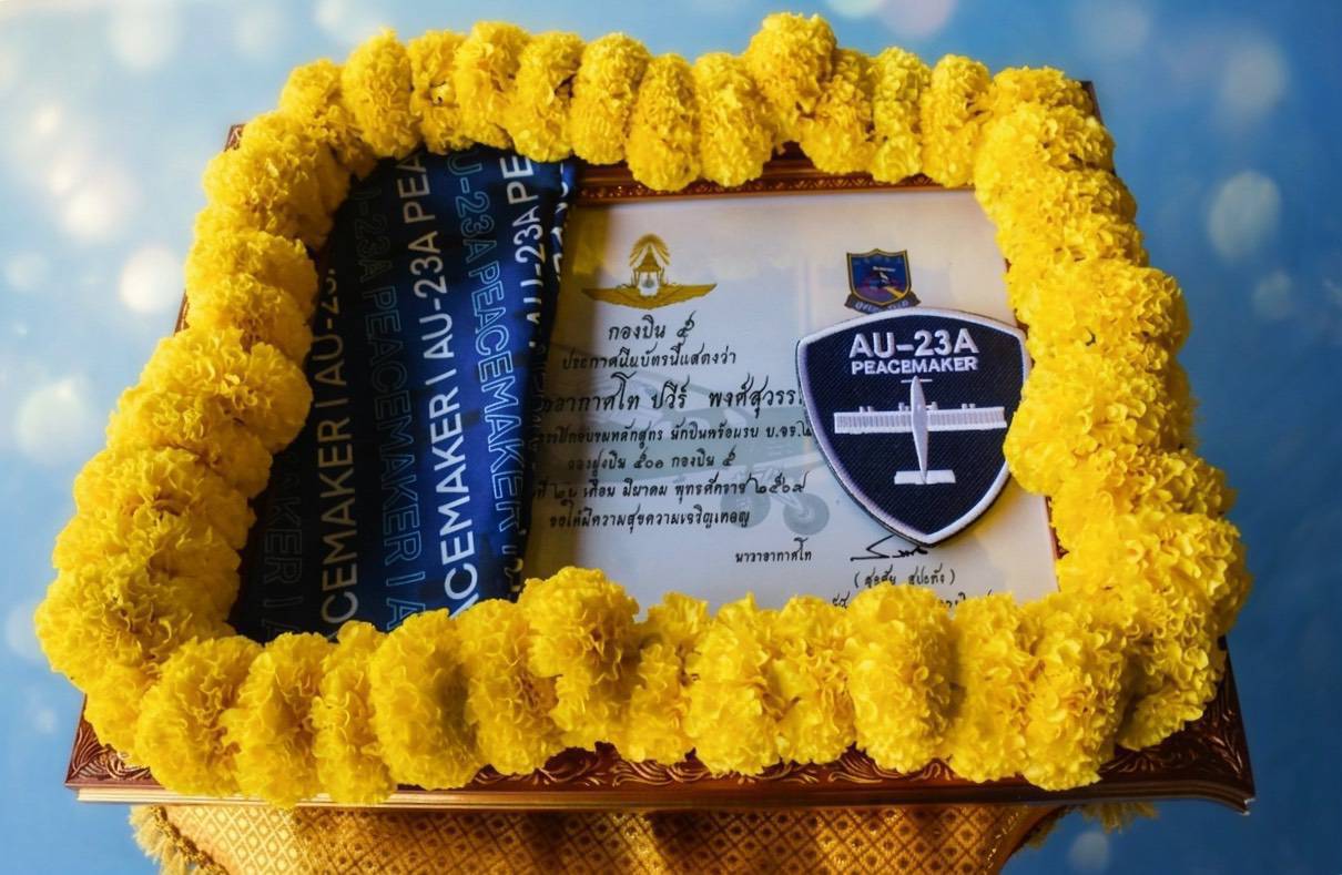 นาวาอากาศเอก รัตนศักดิ์ โพธิ์แก้ว ผู้บังคับการกองบิน ๕ เป็นประธานในพิธีมอบประกาศนียบัตรแก่นักบินที่ผ่านหลักสูตรนักบินพร้อมรบกับเครื่องบินโจมตีธุรการแบบที่ ๒ (AU-23A) โดยมีนักบินสังกัดฝูงบิน ๕๐๑ กองบิน ๕ ผ่านหลักสูตรฯ จำนวน ๑ คน ได้แก่ เรืออากาศโท ปวีร์ พงศ์สุวรรณ