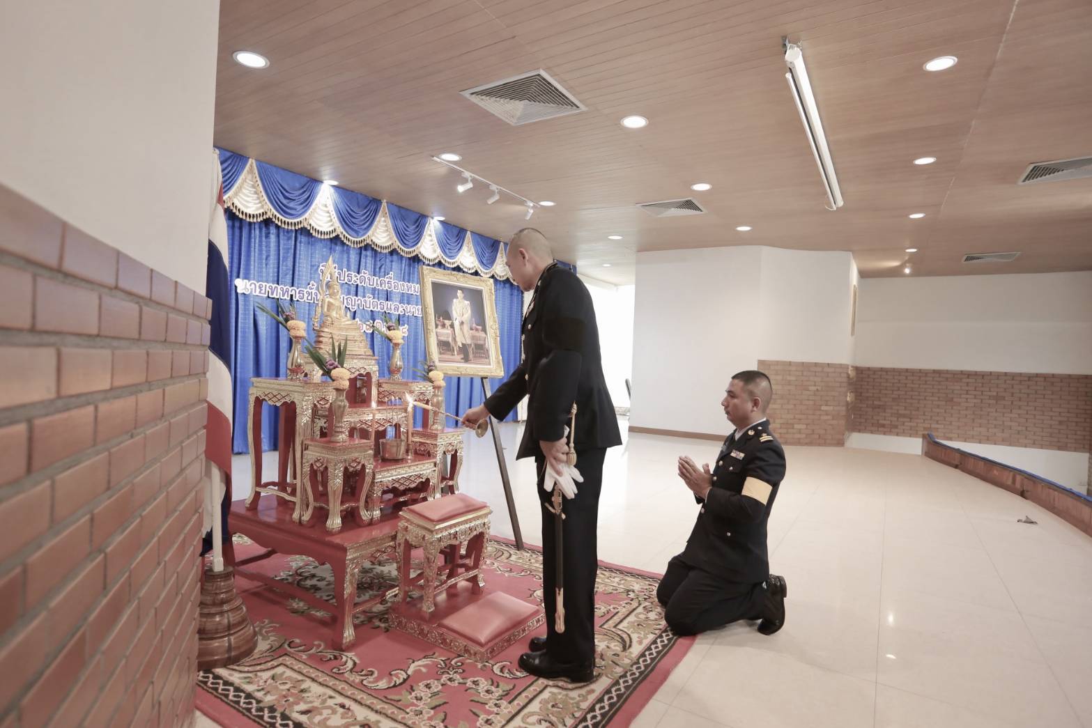 โดยก่อนเริ่มพิธี ผู้บังคับการกองบิน ๕ รองผู้บังคับการกองบิน ๕ เสนาธิการกองบิน ๕ และผู้เข้าร่วมพิธีฯ พร้อมใจยืนสงบนิ่งเพื่อถวายความอาลัยและน้อมรำลึกในพระมหากรุณาธิคุณอันหาที่สุดมิได้แด่สมเด็จพระนางเจ้าสิริกิติ์ พระบรมราชินีนาถ พระบรมราชชนนีพันปีหลวง โดยพร้อมเพรียงกันก่อนการเริ่มพิธีฯ ณ ห้องดุสิตา อาคารอากาศคำรณ กองบิน ๕ ตำบลเกาะหลัก อำเภอเมืองประจวบคีรีขันธ์ จังหวัดประจวบคีรีขันธ์ เมื่อวันที่ ๒๘ ตุลาคม ๒๕๖๘