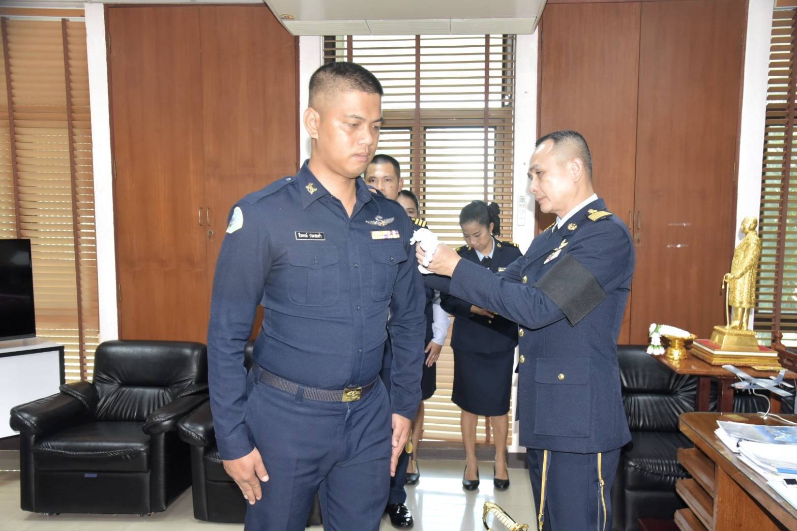 นาวาอากาศเอก รัตนศักดิ์ โพธิ์แก้ว ผู้บังคับการกองบิน ๕ เป็นประธานในพิธีประดับเครื่องหมายยศแก่นายทหารสัญญาบัตรและนายทหารประทวนที่ได้รับการเลื่อนยศสูงขึ้น