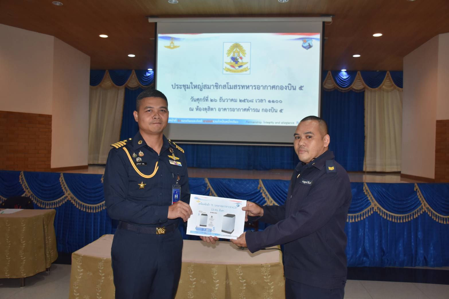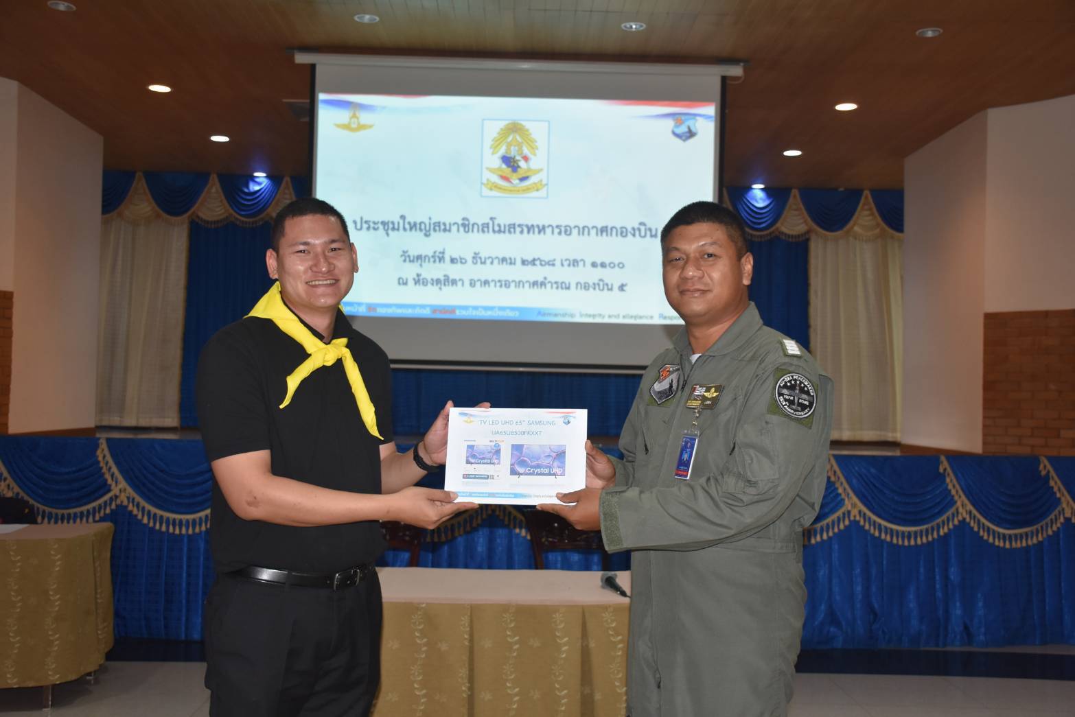 นาวาอากาศเอก รัตนศักดิ์ โพธิ์แก้ว ผู้บังคับการกองบิน ๕ มอบหมายให้ นาวาอากาศเอก ณัฐวุฒิ จันทรจิต รองผู้บังคับการกองบิน ๕ เป็นประธานในการประชุมใหญ่สมาชิกสโมสรทหารอากาศกองบิน ๕ เพื่อรับฟังการบรรยายสรุปผลการดำเนินงานประจำปี ๒๕๖๘ และแผนการดำเนินงานประจำปี ๒๕๖๙ พร้อมทั้งจัดให้มีการลงคะแนนเลือกตั้งประธานสโมสรทหารอากาศกองบิน ๕ และรองประธานสโมสรทหารอากาศกองบิน ๕