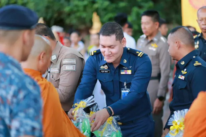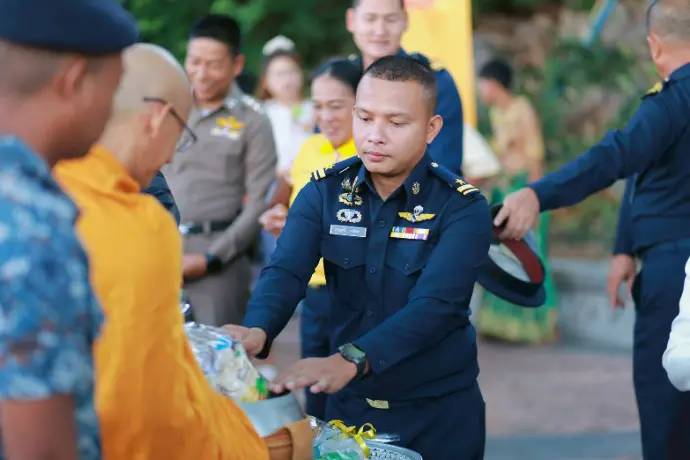 นาวาอากาศเอก รัตนศักดิ์ โพธิ์แก้ว ผู้บังคับการกองบิน ๕ มอบหมายให้ นาวาอากาศเอก สว่าง อ่ำศรี เป็นผู้แทนกองบิน ๕ นำข้าราชการกองบิน ๕ เข้าร่วมงานประเพณีตักบาตรเทโว ประจำปี ๒๕๖๘ เพื่ออนุรักษ์และสืบทอดวัฒนธรรมประเพณีอันดีงามของชาติ โดยมี นายประทีป บริบูรณ์รัตน์ รองผู้ว่าราชการจังหวัดประจวบคีรีขันธ์ เป็นประธานในพิธี ณ บริเวณเขาช่องกระจก ตำบลเกาะหลัก อำเภอเมืองประจวบคีรีขันธ์ จังหวัดประจวบคีรีขันธ์ เมื่อวันที่ ๘ ตุลาคม ๒๕๖๘