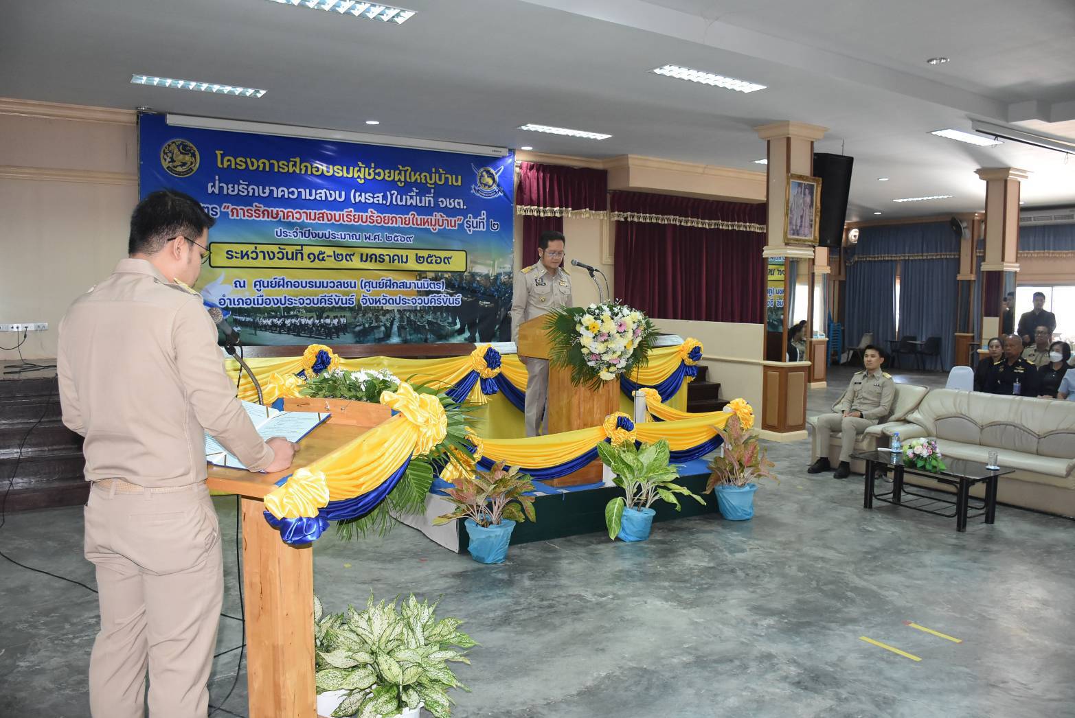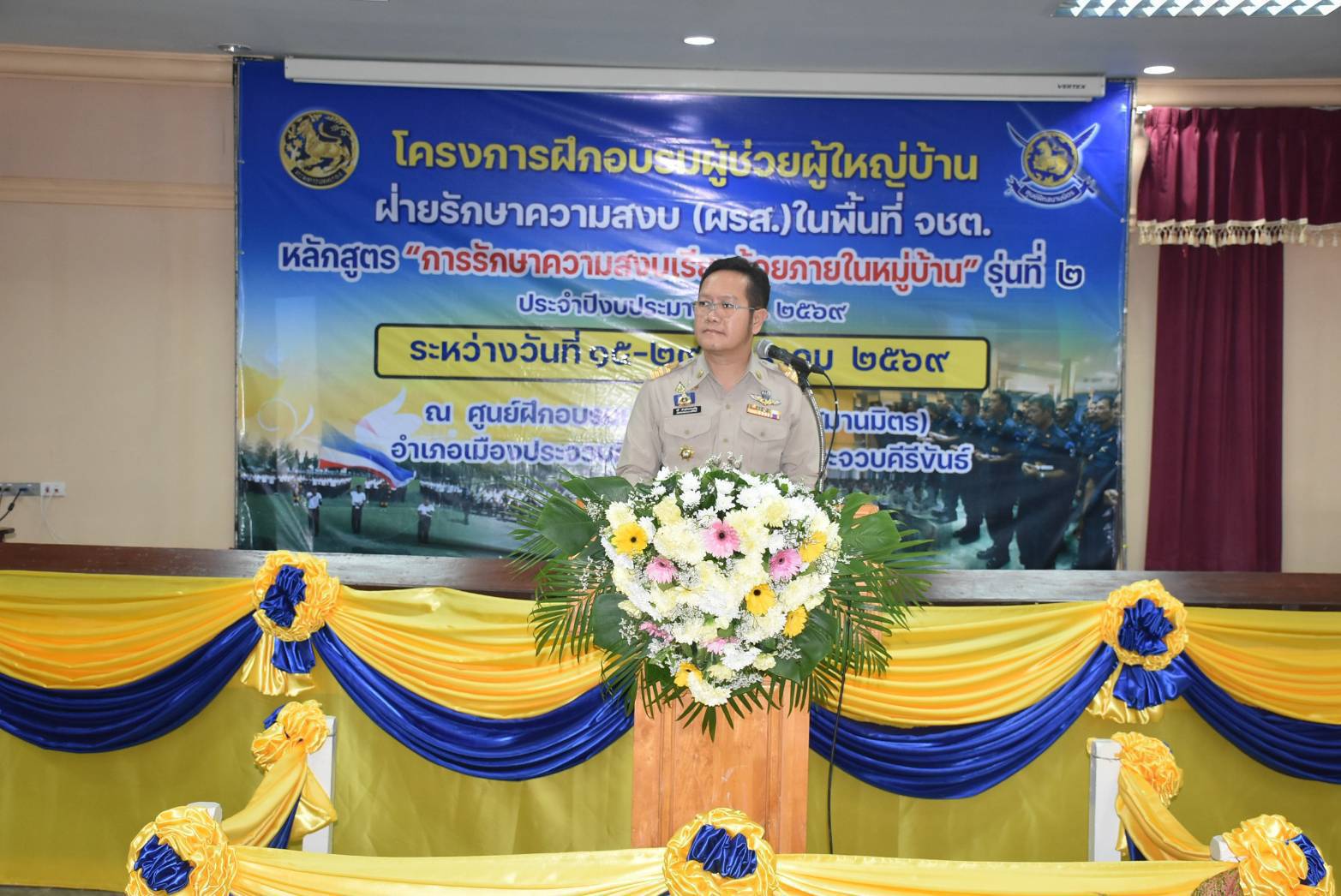 นาวาอากาศเอก รัตนศักดิ์ โพธิ์แก้ว ผู้บังคับการกองบิน ๕ มอบหมายให้ นาวาอากาศเอก สว่าง อ่ำศรี เป็นผู้แทนผู้บังคับการกองบิน ๕ เข้าร่วมพิธีเปิดโครงการฝึกอบรมผู้ช่วยผู้ใหญ่บ้านฝ่ายรักษาความสงบ (ผรส.) ในพื้นที่จังหวัดชายแดนภาคใต้ หลักสูตร “การรักษาความสงบเรียบร้อยภายในหมู่บ้าน” รุ่นที่ ๒ ประจำปีงบประมาณ ๒๕๖๙ โดยมี นายสุธี เล้าสุบินประเสริฐ ปลัดจังหวัดประจวบคีรีขันธ์ เป็นประธานในพิธี พร้อมด้วยหัวหน้าส่วนราชการในจังหวัดประจวบคีรีขันธ์เข้าร่วมพิธีฯ เมื่อวันที่ ๑๖ มกราคม ๒๕๖๙ ณ ศูนย์ฝึกอบรมมวลชน (ศูนย์ฝึกสมานมิตร) อำเภอเมืองประจวบคีรีขันธ์ จังหวัดประจวบคีรีขันธ์