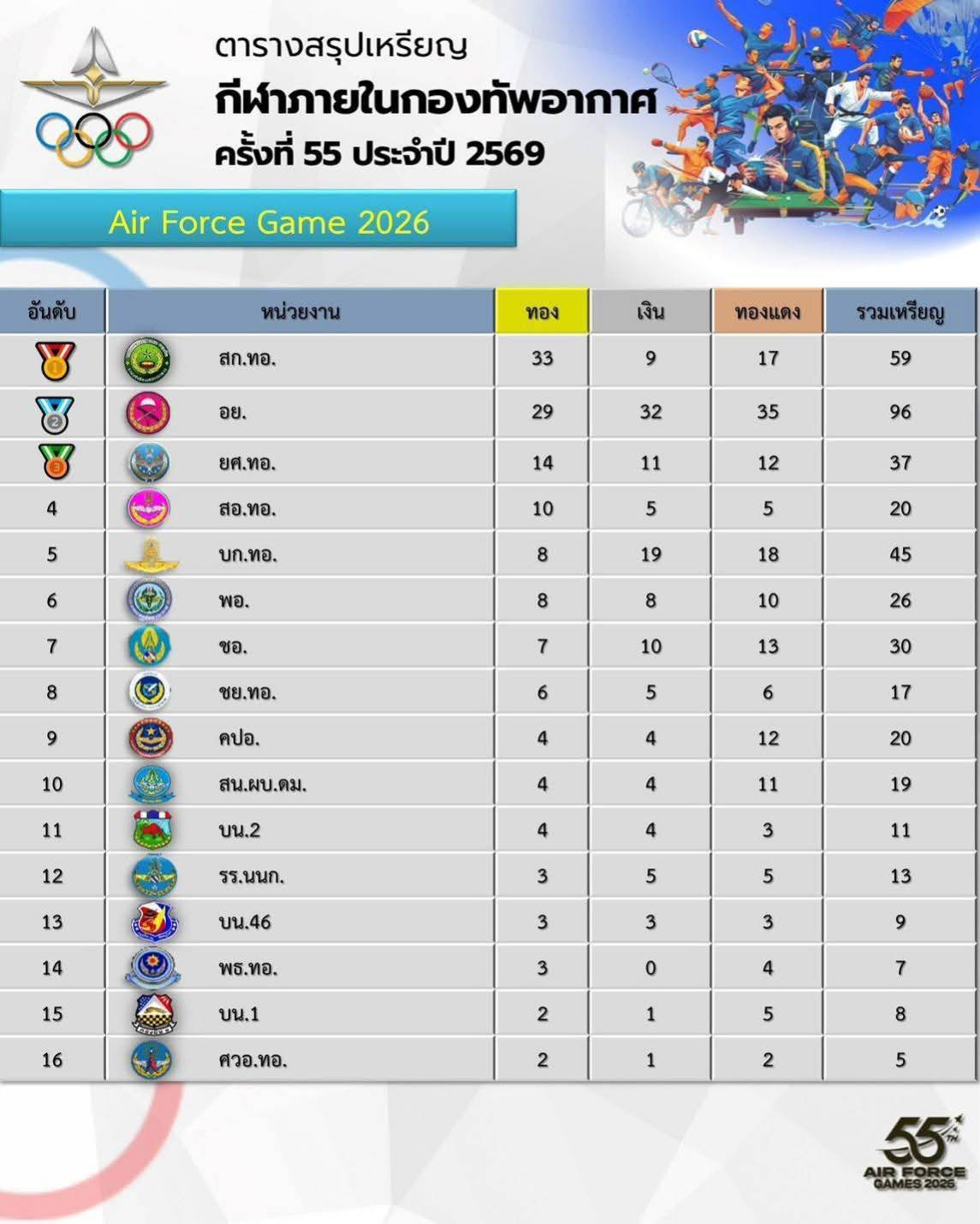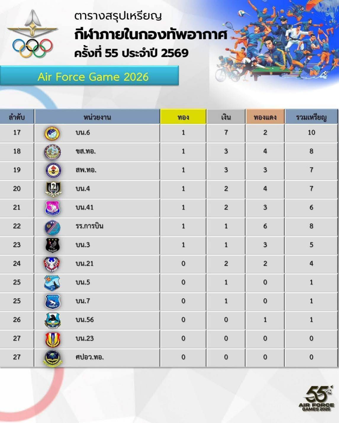 🎉ขอชื่นชมนักกีฬาที่มีความมุ่งมั่น ความสามารถและทุ่มเท ที่สร้างชื่อเสียงให้กับกองบิน 5 ขอเป็นกำลังใจให้ประสบความสำเร็จในครั้งต่อไป