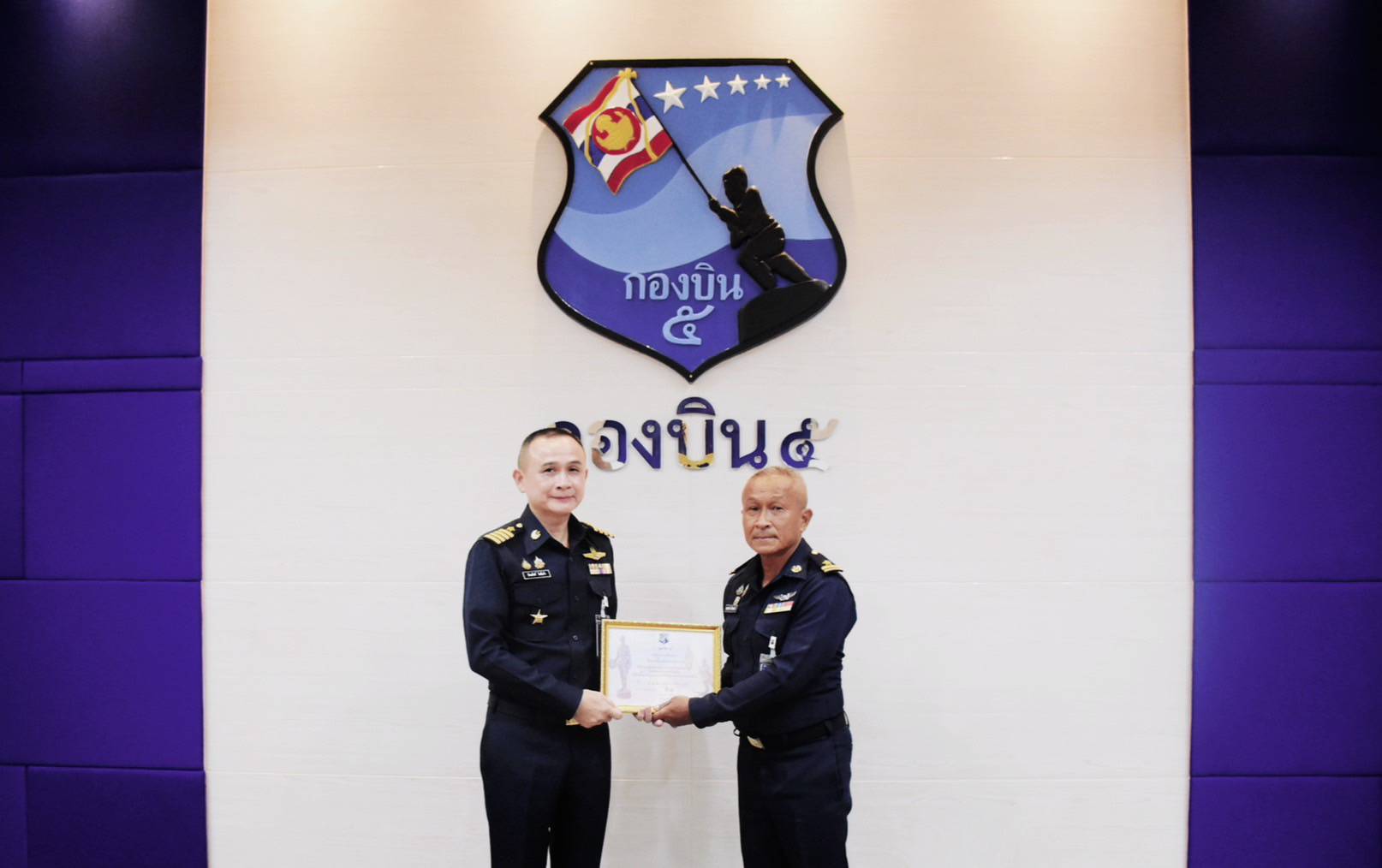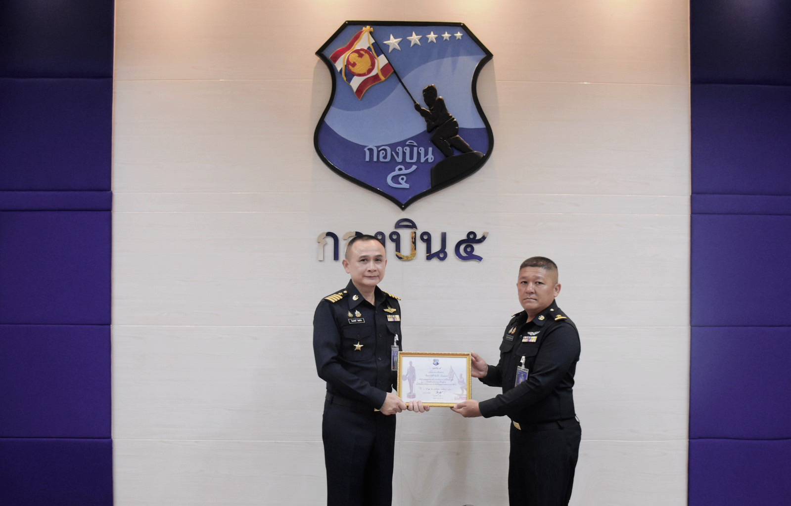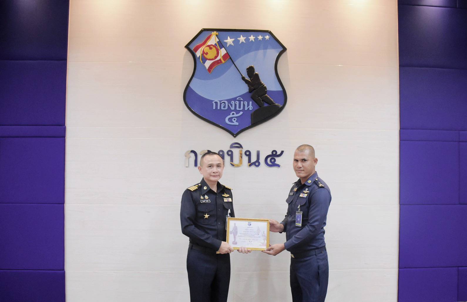 นาวาอากาศเอก รัตนศักดิ์ โพธิ์แก้ว ผู้บังคับการกองบิน ๕ มอบใบประกาศเกียรติคุณให้แก่ข้าราชการกองบิน ๕ ที่ประกอบคุณงามความดีในการช่วยเหลือประชาชน มีจิตสาธารณะ ปฏิบัติหน้าที่ด้วยความรู้ ความสามารถ ความเสียสละ และสร้างชื่อเสียงให้แก่กองบิน ๕ และกองทัพอากาศ