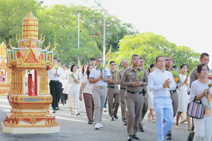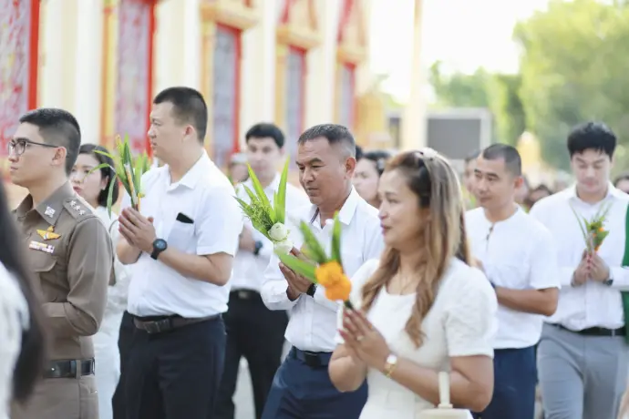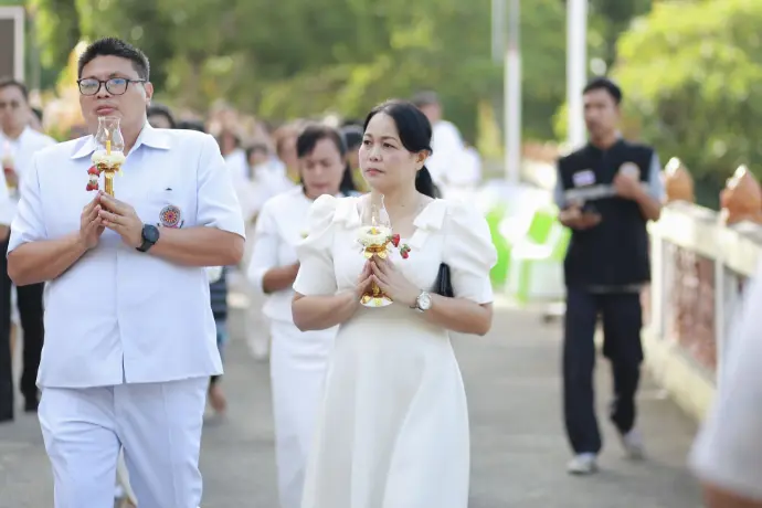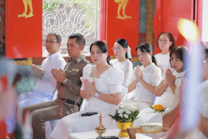 นาวาอากาศเอก พงศ์ชนินทร์ นุชประเสริฐ ผู้บังคับการกองบิน ๕ มอบหมายให้ นาวาอากาศเอกหญิง ประภา ยิ่งสกุล หัวหน้าแผนกสวัสดิการกองบิน ๕ นำข้าราชการกองบิน ๕ ร่วมกิจกรรมส่งเสริมพระพุทธศาสนา เนื่องในวันอาสาฬหบูชาและวันเข้าพรรษา ประจำปี ๒๕๖๘ โดยได้ร่วมประกอบพิธีเจริญพระพุทธมนต์ พิธีเวียนเทียน และพิธีทำบุญตักบาตร เพื่อรักษาและส่งเสริมกิจกรรมทางพระพุทธศาสนา ณ วัดนิคมราษฎร์รังสรรค์ ตำบลอ่าวน้อย อำเภอเมืองประจวบคีรีขันธ์ จังหวัดประจวบคีรีขันธ์ เมื่อวันที่ ๑๐ กรกฎาคม ๒๕๖๘