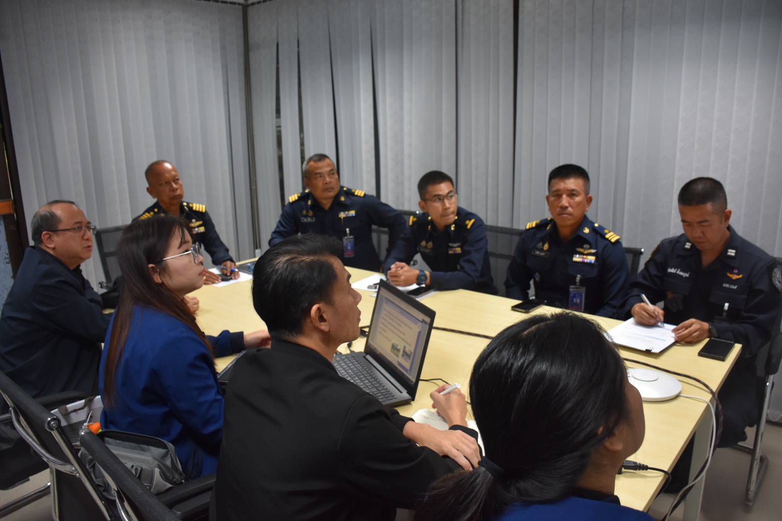 ภายหลังการตรวจสอบพื้นที่แล้วเสร็จ ได้มีการประชุมสรุปผลการดำเนินงาน โดยผู้เชี่ยวชาญได้ให้คำแนะนำและข้อเสนอแนะเกี่ยวกับแนวทางการบริหารจัดการคุณภาพน้ำ ตลอดจนการแก้ไขปัญหาที่เกี่ยวข้อง เพื่อให้การจัดการคุณภาพน้ำภายในกองบิน ๕ เป็นไปอย่างมีประสิทธิภาพและสอดคล้องตามเกณฑ์มาตรฐานที่กำหนด ณ ห้องประชุมกองบังคับการ กองบิน ๕ ตำบลเกาะหลัก อำเภอเมืองประจวบคีรีขันธ์ จังหวัดประจวบคีรีขันธ์ เมื่อวันที่ ๑๕ ธันวาคม ๒๕๖๘