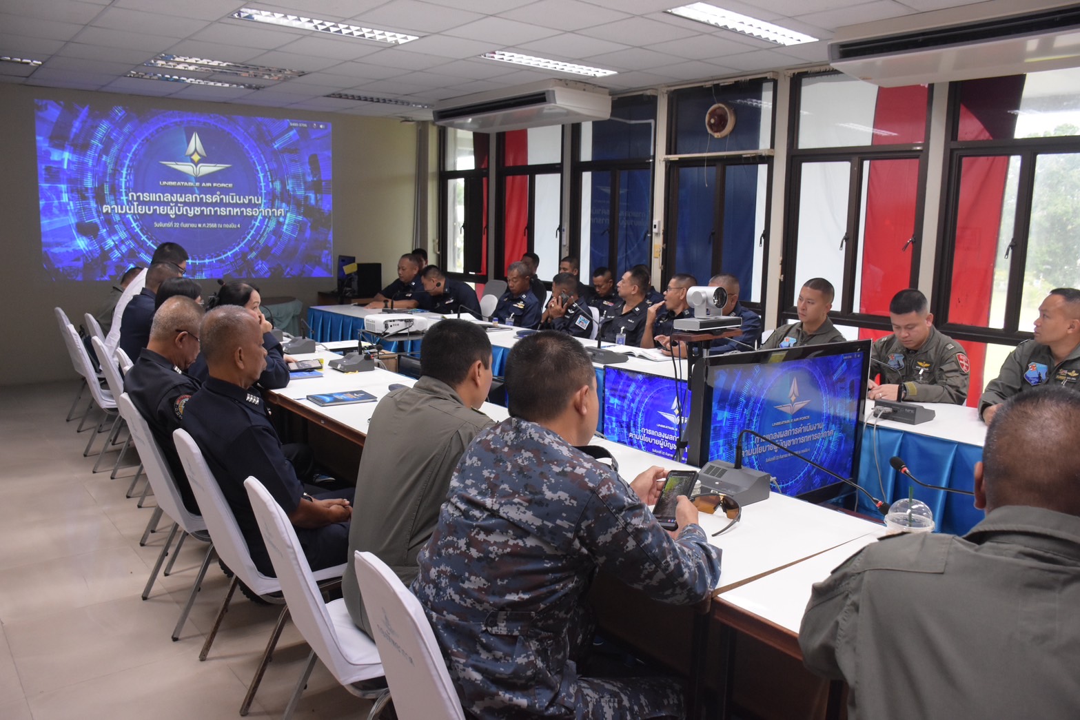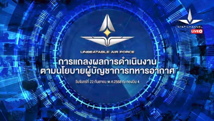 พลอากาศเอก พันธ์ภักดี พัฒนกุล ผู้บัญชาการทหารอากาศ เป็นประธานในการแถลงผลการปฏิบัติงาน ผ่านการถ่ายทอดสัญญาณสดทางระบบ Cable TV และรับชมผ่าน RTAF IPTV เพื่อให้กำลังพลทุกหน่วยได้รับทราบผลการดำเนินงาน และใช้เป็นแนวทางในการขับเคลื่อนการปฏิบัติราชการอย่างมีประสิทธิภาพต่อไป เมื่อวันที่ ๒๒ กันยายน พ.ศ.๒๕๖๘ ณ ที่ตั้งกองบิน ๕ ตำบลเกาะหลัก อำเภอเมือง จังหวัดประจวบคีรีขันธ์
