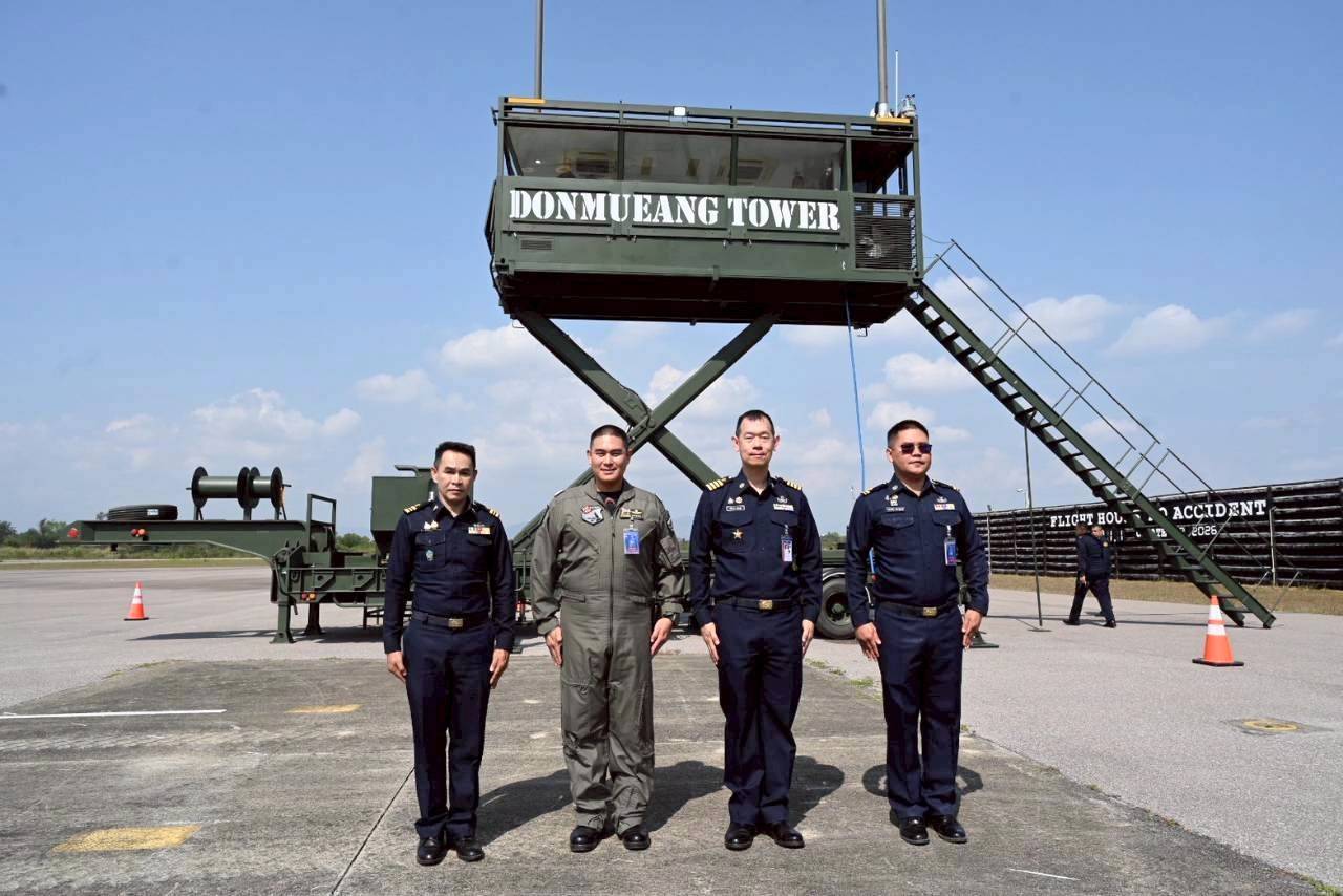 นาวาอากาศเอก รัตนศักดิ์ โพธิ์แก้ว ผู้บังคับการกองบิน ๕ มอบหมายให้ นาวาอากาศเอก ณัฐวุฒิ จันทรจิต และ นาวาอากาศเอก ชิดพล อุไรพงษ์ รองผู้บังคับการกองบิน ๕ ให้การต้อนรับ นาวาอากาศเอก ปณิธาน วะนะสุข รองผู้อำนวยการกองบังคับการบิน ศูนย์ป้องกันทางอากาศ กองบัญชาการควบคุมการปฏิบัติทางอากาศ ในโอกาสเข้าร่วมการทดสอบหอบังคับการบินเคลื่อนที่