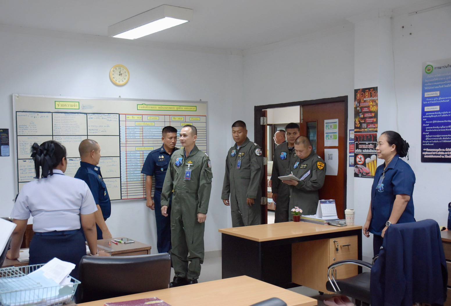 นาวาอากาศเอก รัตนศักดิ์ โพธิ์แก้ว ผู้บังคับการกองบิน ๕ พร้อมด้วย รองผู้บังคับการกองบิน ๕ และเสนาธิการกองบิน ๕ ตรวจเยี่ยมแผนกสวัสดิการ กองบิน ๕ เพื่อรับทราบภารกิจ ปัญหา ข้อขัดข้อง รวมถึงแผนดำเนินงานของหน่วย โอกาสนี้ได้พบปะข้าราชการแผนกสวัสดิการกองบิน ๕ เพื่อสร้างขวัญกำลังใจในการปฏิบัติภารกิจต่อไป โดยมี นาวาอากาศตรี นิวัติ ภิรมย์ศรี หัวหน้าแผนกสวัสดิการ กองบิน ๕ พร้อมด้วย ข้าราชการ ลูกจ้าง และพนักงานราชการแผนกสวัสดิการ กองบิน ๕ ให้การต้อนรับ ณ แผนกสวัสดิการ กองบิน ๕ ตำบลเกาะหลัก อำเภอเมืองประจวบคีรีขันธ์ จังหวัดประจวบคีรีขันธ์ เมื่อวันที่ ๒๑ ตุลาคม ๒๕๖๘