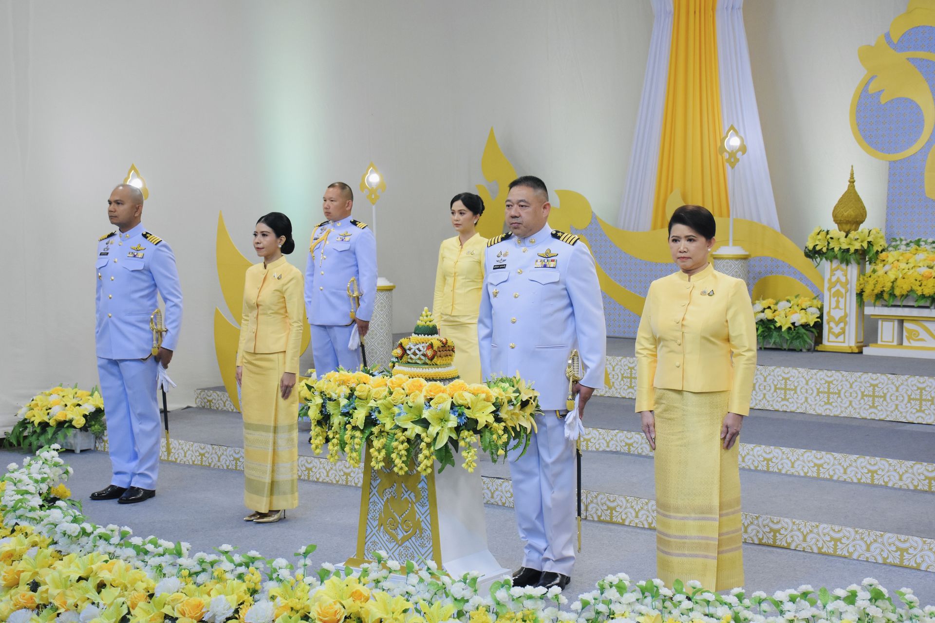 นาวาอากาศเอก พงศ์ชนินทร์ นุชประเสริฐ ผู้บังคับการกองบิน ๕ พร้อมด้วยคุณ พลอยนภัส นุชประเสริฐ ประธานชมรมคู่สมรสทหารอากาศกองบิน ๕ รองผู้บังคับการกองบิน ๕ เสนาธิการกองบิน ๕ ผู้บังคับฝูงบิน ๕๐๑ กองบิน ๕ หัวหน้าแผนกกำลังพล กองบังคับการ กองบิน ๕ และรองประธานชมรมคู่สมรสทหารอากาศกองบิน ๕ ร่วมบันทึกเทปถวายพระพร พระบาทสมเด็จพระเจ้าอยู่หัว เนื่องในโอกาสมหามงคลวันเฉลิมพระชนมพรรษา ๗๓ พรรษา ๒๘ กรกฎาคม ๒๕๖๘ ณ สถานีวิทยุโทรทัศน์แห่งประเทศไทย จังหวัดกาญจนบุรี เมื่อวันที่ ๗ กรกฎาคม ๒๕๖๘