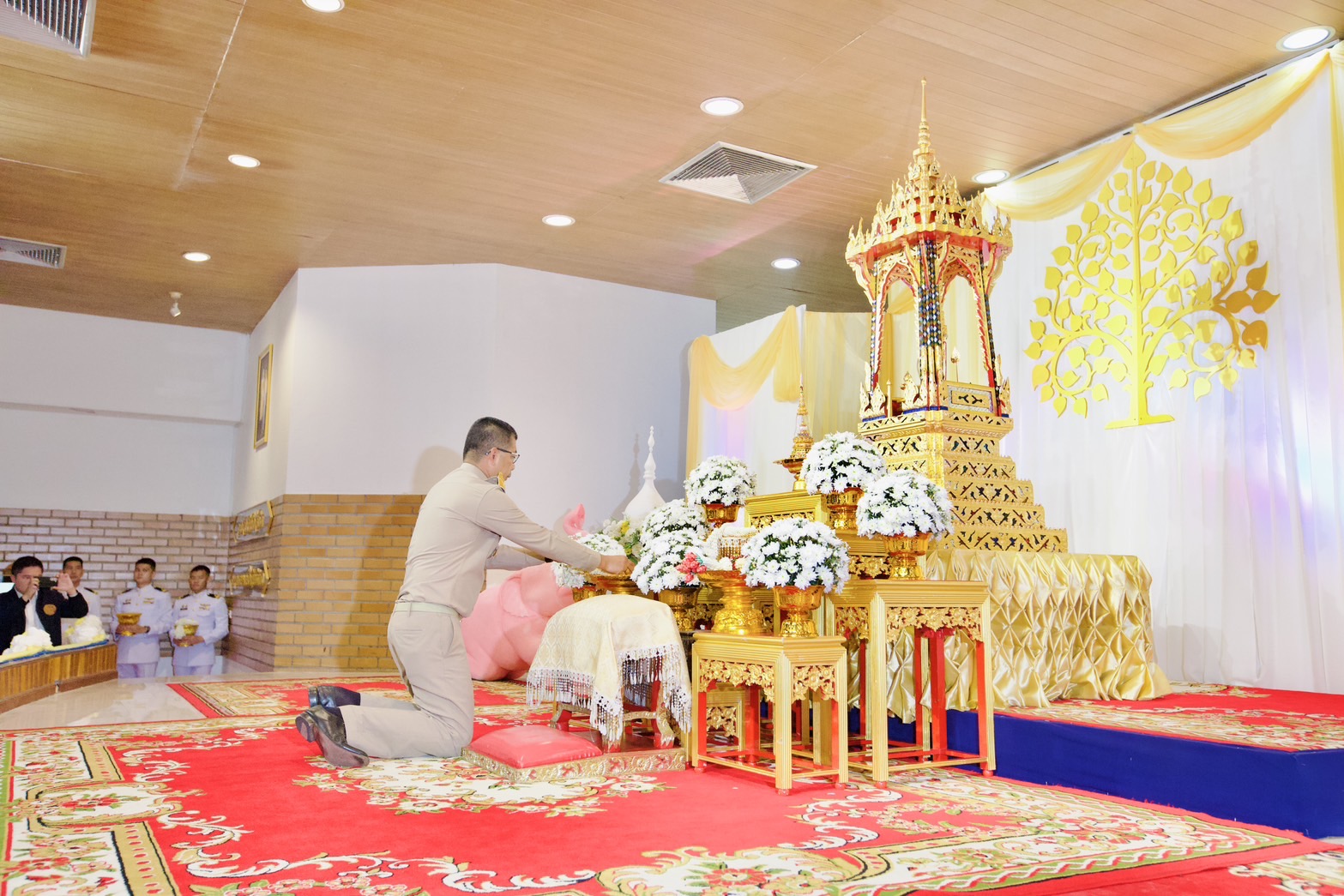 นาวาอากาศเอก พงศ์ชนินทร์ นุชประเสริฐ ผู้บังคับการกองบิน ๕ พร้อมด้วย รองผู้บังคับการกองบิน ๕ เสนาธิการกองบิน ๕ นำข้าราชการ ลูกจ้าง และพนักงานราชการ กองบิน ๕ ร่วมพิธีอัญเชิญพระบรมสารีริกธาตุ “องค์ปฐม” มาประดิษฐาน เป็นการชั่วคราว ณ กองบิน ๕ เพื่อเป็นสิริมงคลแก่กำลังพลและพุทธศาสนิกชน โดยมี พลอากาศเอกวิธูร ขำเจริญ ประธานคณะที่ปรึกษากองทัพอากาศ เป็นประธานฝ่ายฆราวาส และได้รับความเมตตาจากพระเดชพระคุณ พระธรรมวชิรสิทธาจารย์ เจ้าคณะภาค ๑๕ เป็นประธานฝ่ายสงฆ์ โอกาสสำคัญนี้ นายปรีดา สุขใจ รองผู้ว่าราชการจังหวัดประจวบคีรีขันธ์ และหัวหน้าส่วนราชการ ข้าราชการ ในจังหวัดประจวบคีรีขันธ์เข้าร่วมพิธีโดยพร้อมเพียงกัน ณ ห้องดุสิตา อาคารอากาศคำรณกองบิน ๕ ตำบลเกาะหลัก อำเภอเมืองประจวบคีรีขันธ์ จังหวัดประจวบคีรีขันธ์