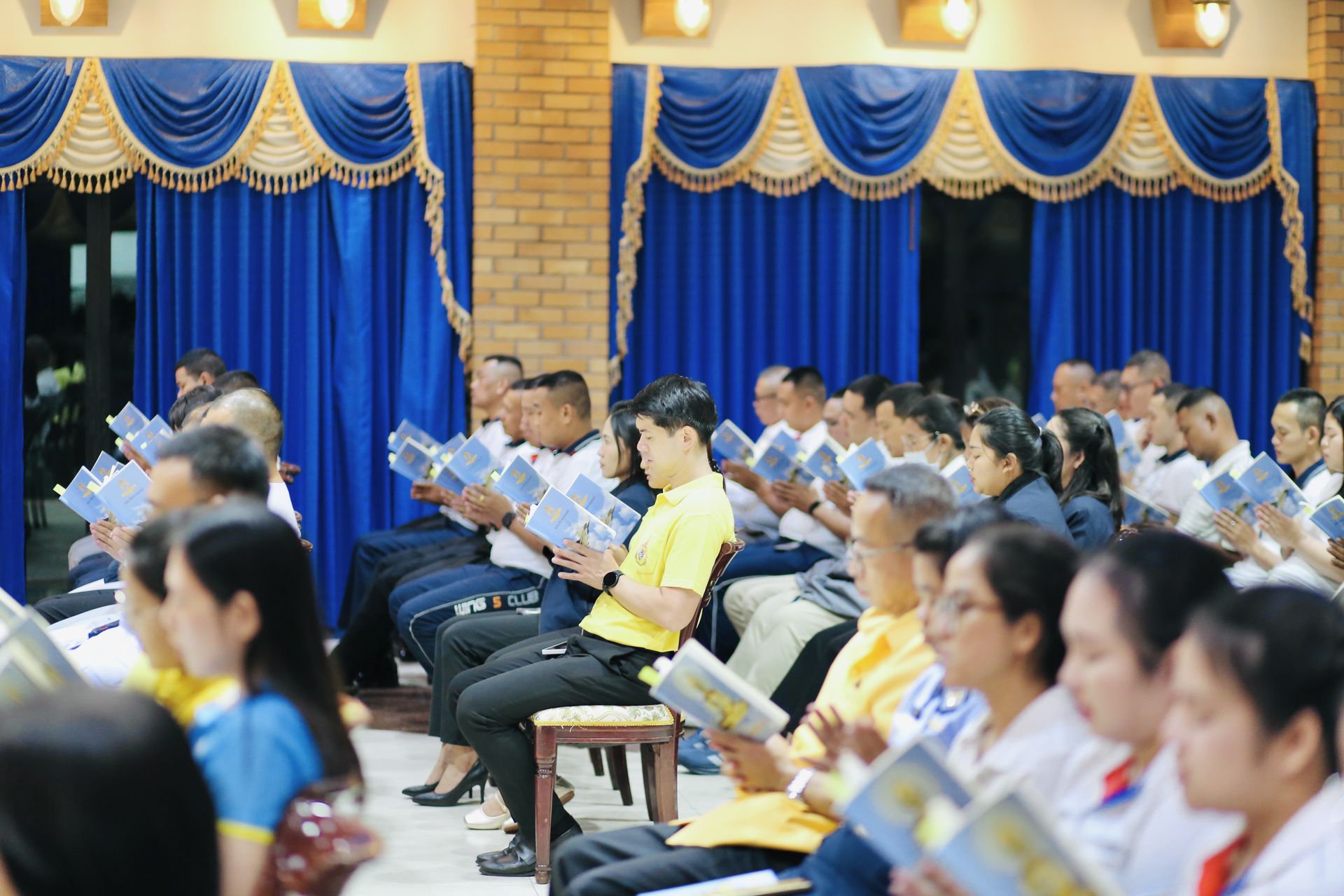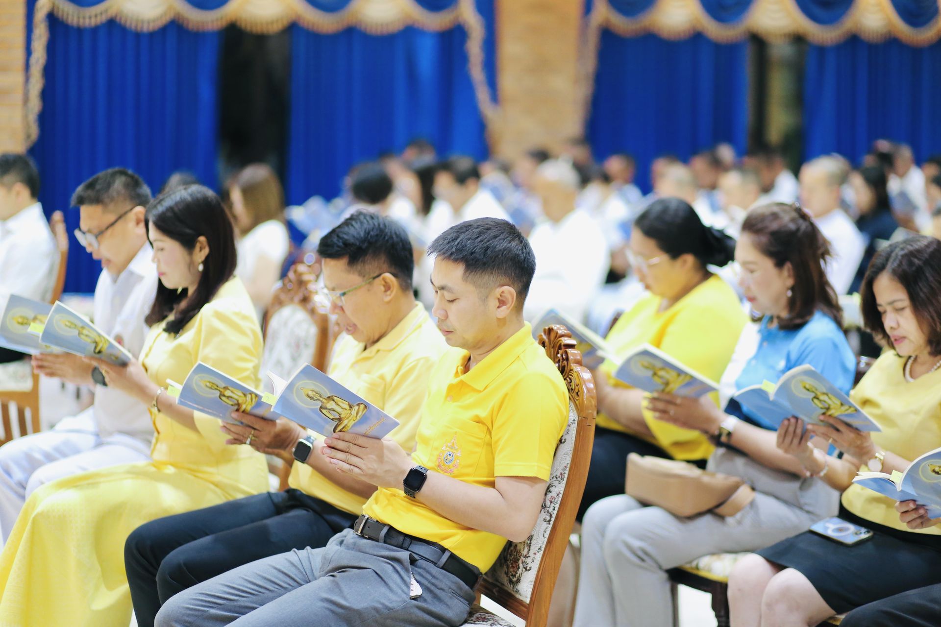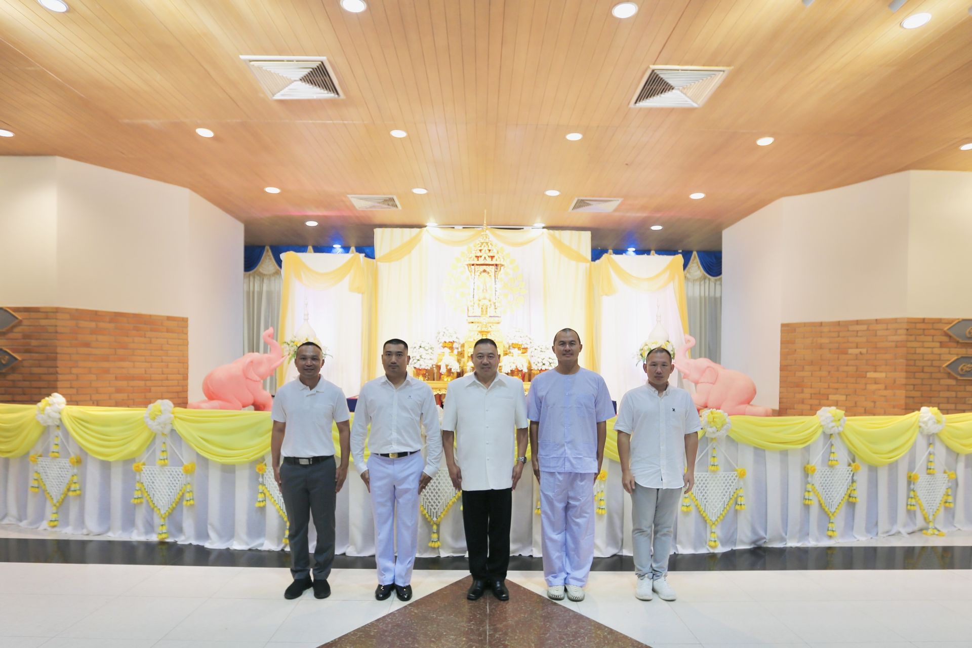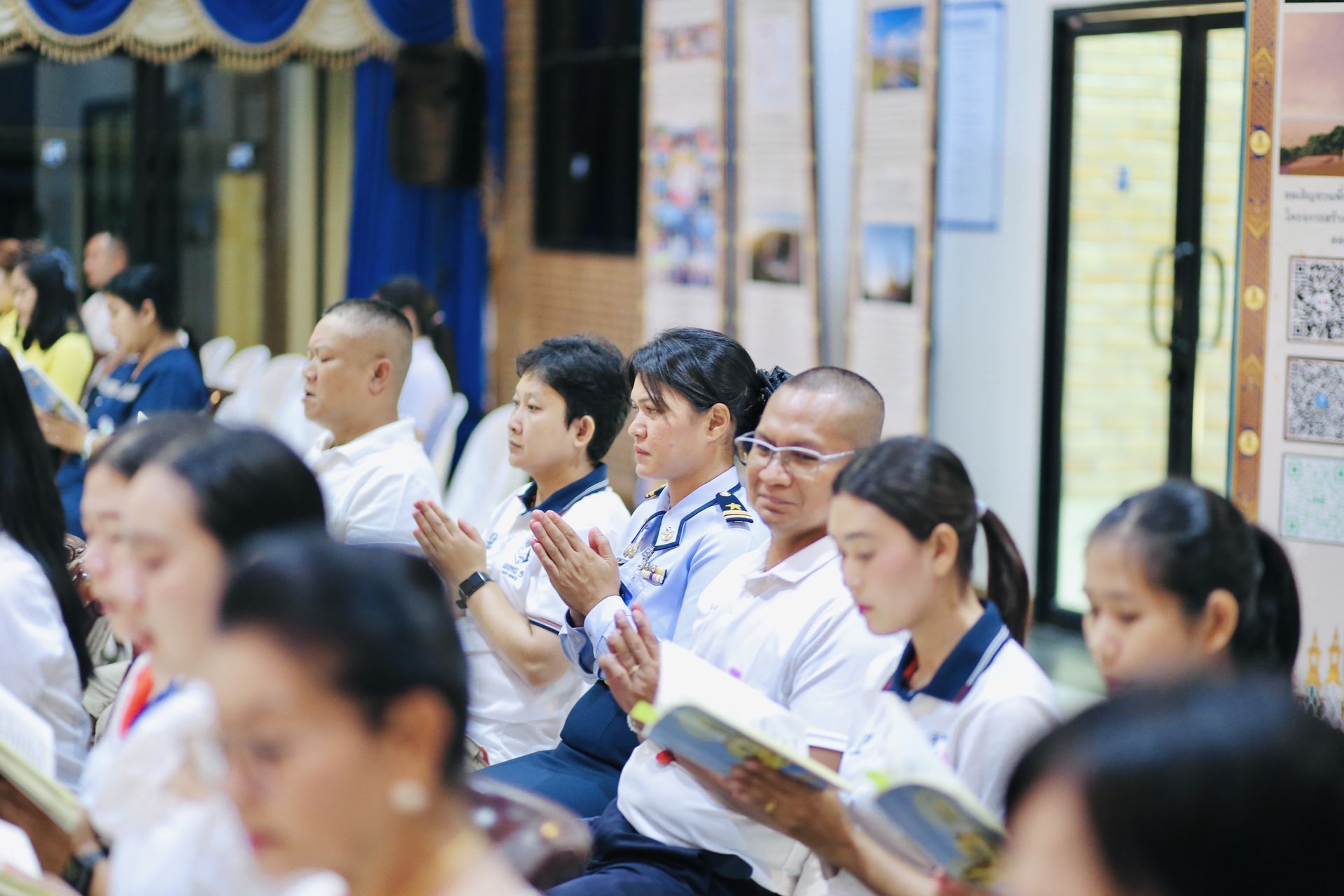 นาวาอากาศเอก พงศ์ชนินทร์ นุชประเสริฐ ผู้บังคับการกองบิน ๕ นำข้าราชการ ลูกจ้าง พนักงานราชการ และครอบครัวกองบิน ๕ ร่วมพิธีฉลองสมโภช พิธีนมัสการพระบรมสารีริกธาตุ “องค์ปฐม” และพิธีสวดมนต์ทำวัตรประจำวัน เนื่องในโอกาส อัญเชิญมาประดิษฐาน เป็นการชั่วคราว ณ กองบิน ๕ เพื่อเป็นสิริมงคลแก่กำลังพลและพุทธศาสนิกชนที่เข้าร่วมพิธี โอกาสนี้ หัวหน้าส่วนราชการ ข้าราชการ นักเรียน นักศึกษา พุทธศาสนิกชนและประชานทั่วไปในจังหวัดประจวบคีรีขันธ์เข้าร่วมพิธีโดยพร้อมเพียงกัน ณ ห้องดุสิตา อาคารอากาศคำรณกองบิน ๕ ตำบลเกาะหลัก อำเภอเมืองประจวบคีรีขันธ์ จังหวัดประจวบคีรีขันธ์ เมื่อวันที่ ๒๙ กรกฎาคม ๒๕๖๘