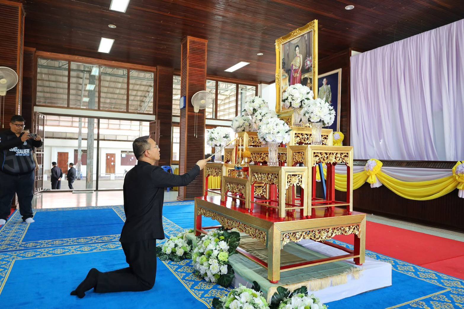 โดยมี พระเทพวชิรสุธี เจ้าคณะจังหวัดประจวบคีรีขันธ์ (ธรรมยุติ) เจ้าอาวาสวัดธรรมิการามวรวิหาร เป็นประธานฝ่ายสงฆ์ และ พันจ่าเอก พัณณ์ภัสส์ สิทธิศักดิ์ รองผู้ว่าราชการจังหวัดประจวบคีรีขันธ์ พร้อมด้วย พันจ่าเอกหญิง ดนุภา สิทธิศักดิ์ รองประธานแม่บ้านมหาดไทยจังหวัดประจวบคีรีขันธ์ เป็นประธานฝ่ายฆราวาส ทั้งนี้ มีหัวหน้าส่วนราชการและข้าราชการในพื้นที่จังหวัดประจวบคีรีขันธ์เข้าร่วมพิธีโดยพร้อมเพรียงกัน