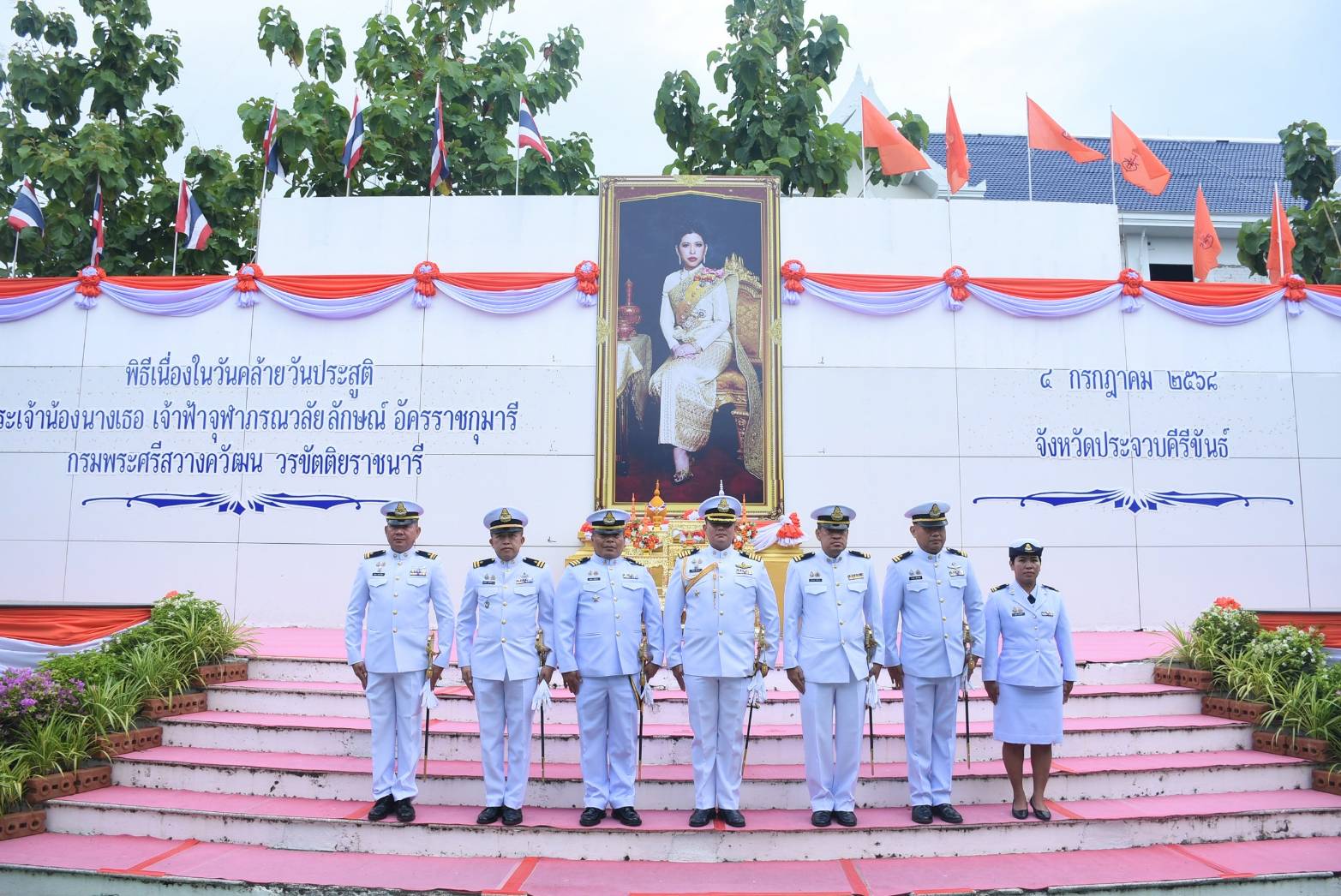 นาวาอากาศเอก พงศ์ชนินทร์ นุชประเสริฐ ผู้บังคับการกองบิน ๕ มอบหมายให้ นาวาอากาศเอก ชิดพล อุไรพงษ์ เสนาธิการกองบิน ๕ ได้นำข้าราชการ ร่วมพิธีถวายพระพรชัยมงคลและพิธีทำบุญตักบาตรถวายเป็นพระราชกุศล เนื่องในวันคล้ายวันประสูติ สมเด็จพระเจ้า น้องนางเธอ เจ้าฟ้าจุฬาภรณวลัยลักษณ์ อัครราชกุมารี กรมพระศรีสวางควัฒน วรขัตติยราชนารี ณ ศาลากลางจังหวัดประจวบคีรีขันธ์ ตำบลเกาะหลัก อำเภอเมือง จังหวัดประจวบคีรีขันธ์ เมื่อวันที่ ๔ กรกฎาคม ๒๕๖๘