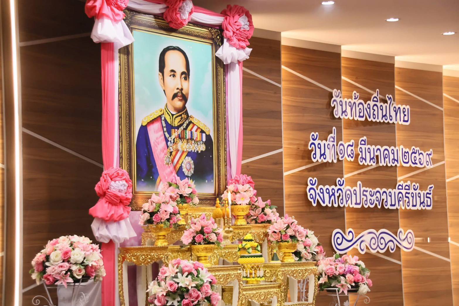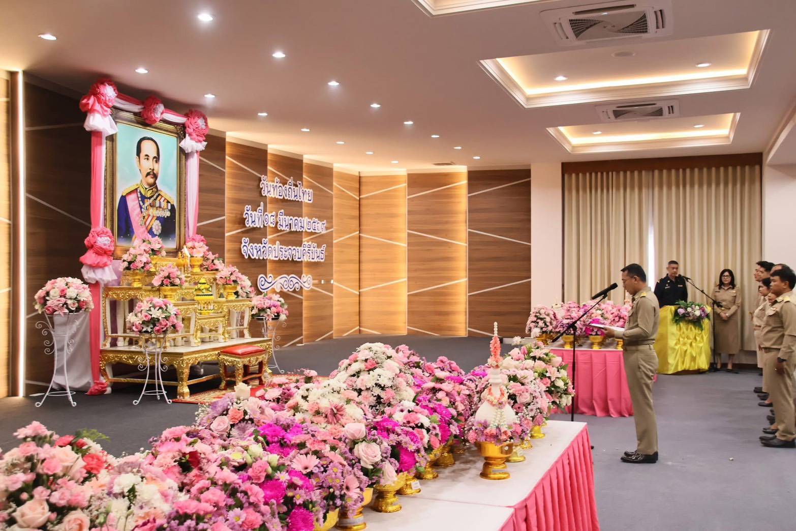 โดยมี พันจ่าเอก สาคร สิทธิศักดิ์ รองผู้ว่าราชการจังหวัดประจวบคีรีขันธ์ เป็นประธานในพิธี พร้อมด้วยหัวหน้าส่วนราชการ ผู้บริหารองค์กรปกครองส่วนท้องถิ่น และข้าราชการทุกหมู่เหล่าเข้าร่วมพิธี เพื่อรำลึกถึงพระมหากรุณาธิคุณของพระองค์ ที่ทรงมีพระบรมราชโองการให้ยกฐานะตำบลท่าฉลอมขึ้นเป็นสุขาภิบาลแห่งแรกของประเทศไทย เมื่อวันที่ ๑๘ มีนาคม พ.ศ. ๒๔๔๘ ซึ่งถือเป็นจุดเริ่มต้นของการกระจายอำนาจการปกครองสู่ท้องถิ่น และเปิดโอกาสให้ประชาชนมีส่วนร่วมในการบริหารและพัฒนาท้องถิ่นของตนเอง อันเป็นรากฐานสำคัญของการปกครองส่วนท้องถิ่นมาจนถึงปัจจุบัน