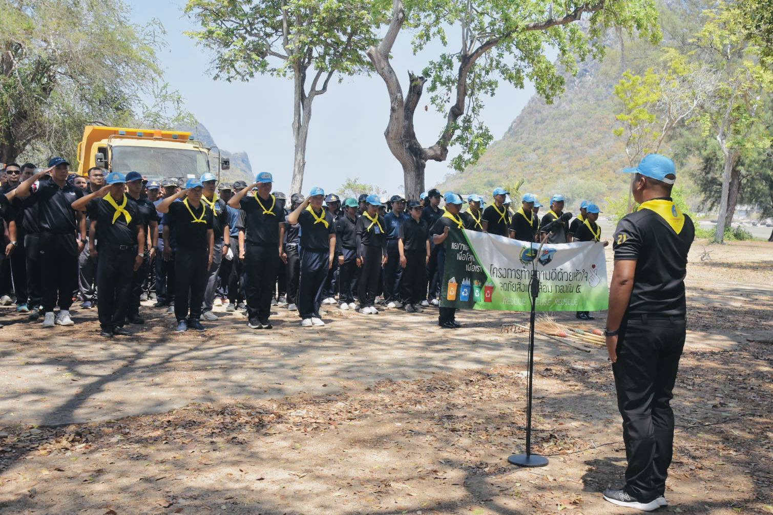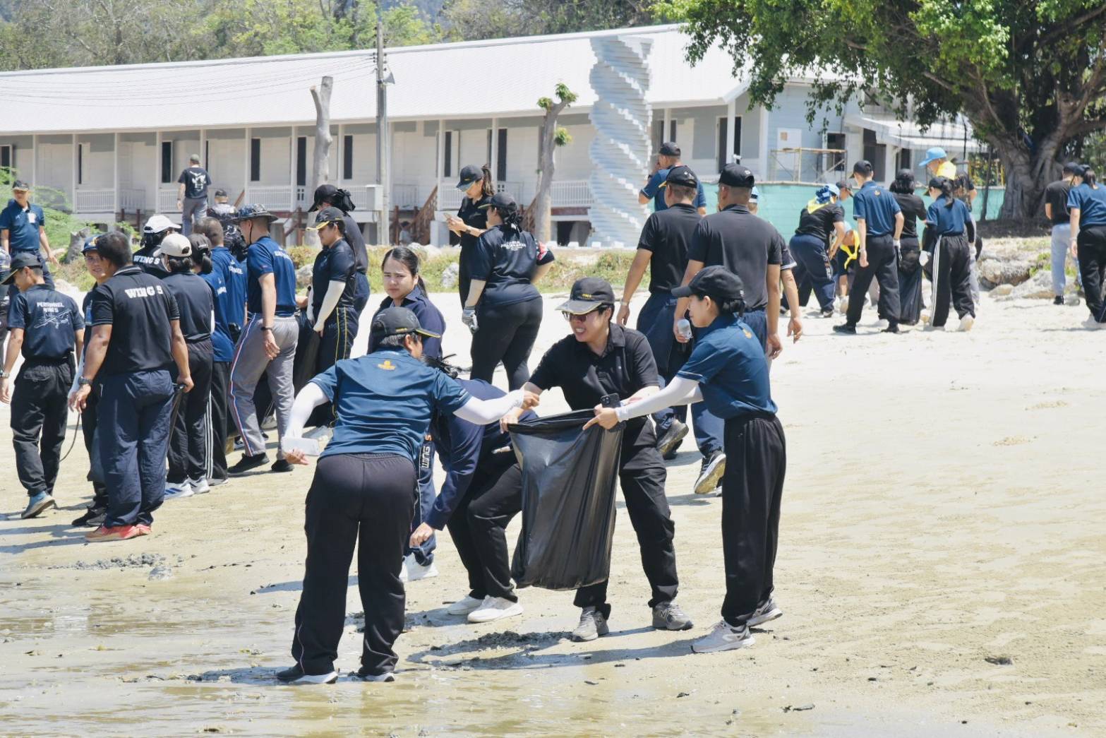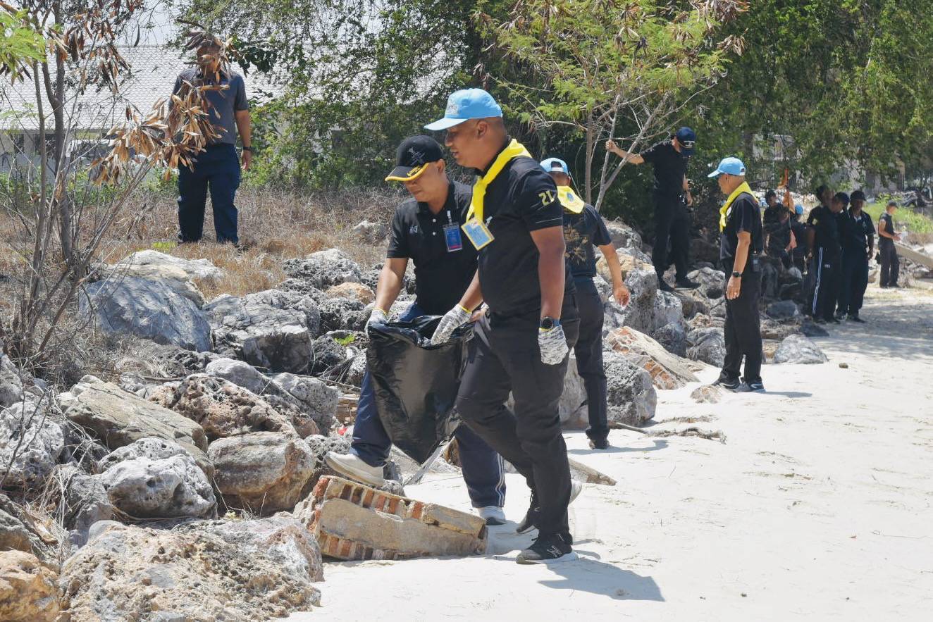 นาวาอากาศเอก รัตนศักดิ์ โพธิ์แก้ว ผู้บังคับการกองบิน ๕ มอบหมายให้ นาวาอากาศเอก ณัฐวุฒิ จันทรจิต รองผู้บังคับการกองบิน ๕ นำข้าราชการ ลูกจ้าง และพนักงานราชการกองบิน ๕ ร่วมกิจกรรมจิตอาสา “เราทำความดี ด้วยหัวใจ” ภายใต้โครงการลดภัยสิ่งแวดล้อม เนื่องในวันกองทัพอากาศ ๙ เมษายน ๒๕๖๙ โดยดำเนินการทำความสะอาดและปรับปรุงภูมิทัศน์บริเวณแนวชายหาดอ่าวประจวบคีรีขันธ์